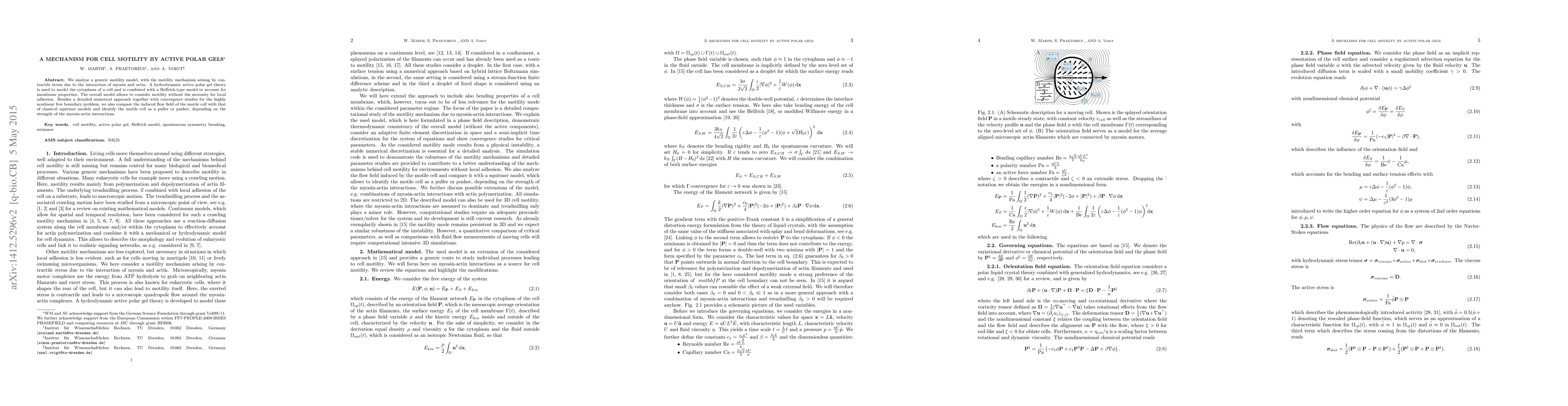 We analyse a generic motility model, with the motility mechanism arising by contractile stress due to the interaction of myosin and actin. A hydrodynamic active polar gel theory is used to model the cytoplasm of a cell and is combined with a Helfrich-type model to account for membrane properties. The overall model allows to consider motility without the necessity for local adhesion. Besides a detailed numerical approach together with convergence studies for the highly nonlinear free boundary problem, we also compare the induced flow field of the motile cell with that of classical squirmer models and identify the motile cell as a puller or pusher, depending on the strength of the myosin-actin interactions.