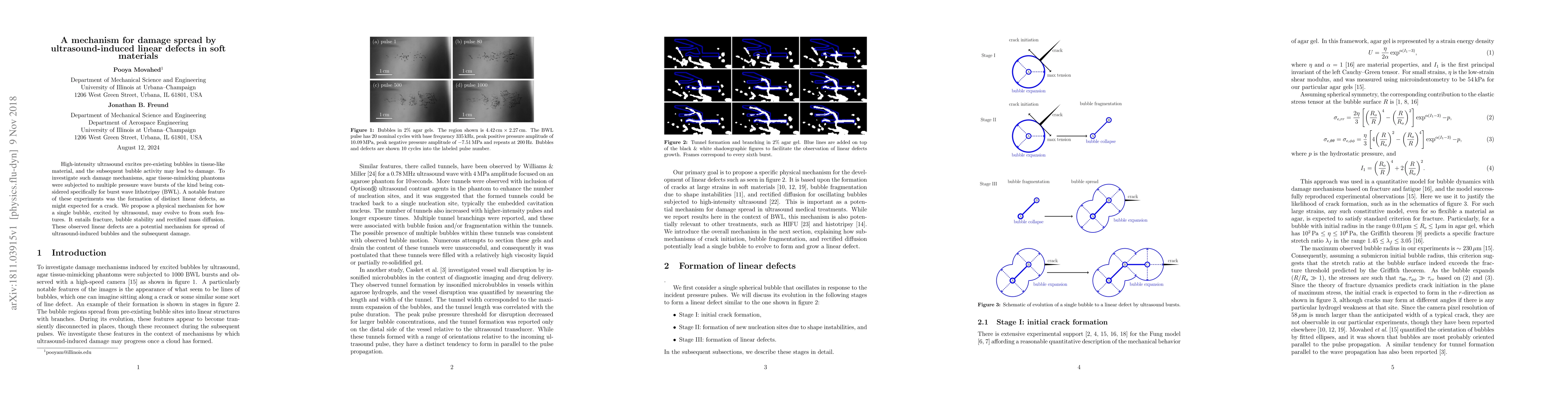 Researchers used ultrasound to create linear defects in tissue-like materials, proposing a mechanism involving bubble formation, fracture, and mass diffusion that could spread damage.
