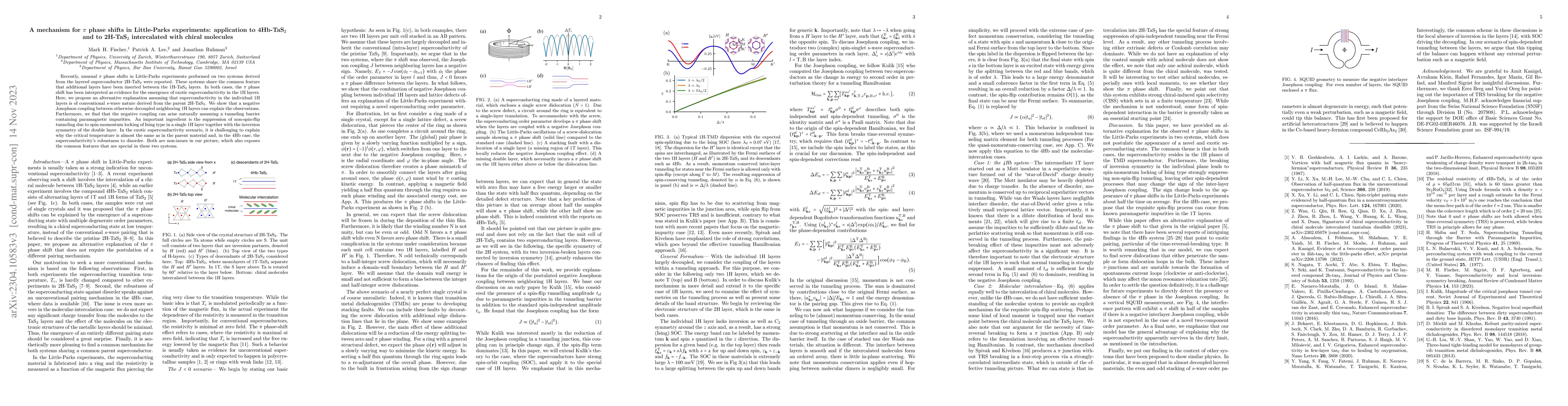 This paper proposes an alternative explanation for the observed $\pi$ phase shifts in Little-Parks experiments on 4Hb-TaS$_2$ and 2H-TaS$_2$ intercalated with chiral molecules, suggesting that conventional $s$-wave superconductivity in the 1H layers, linked by negative Josephson coupling, accounts for the shifts. This model avoids the complexities of exotic superconductivity, addressing issues like temperature consistency and disorder resilience.