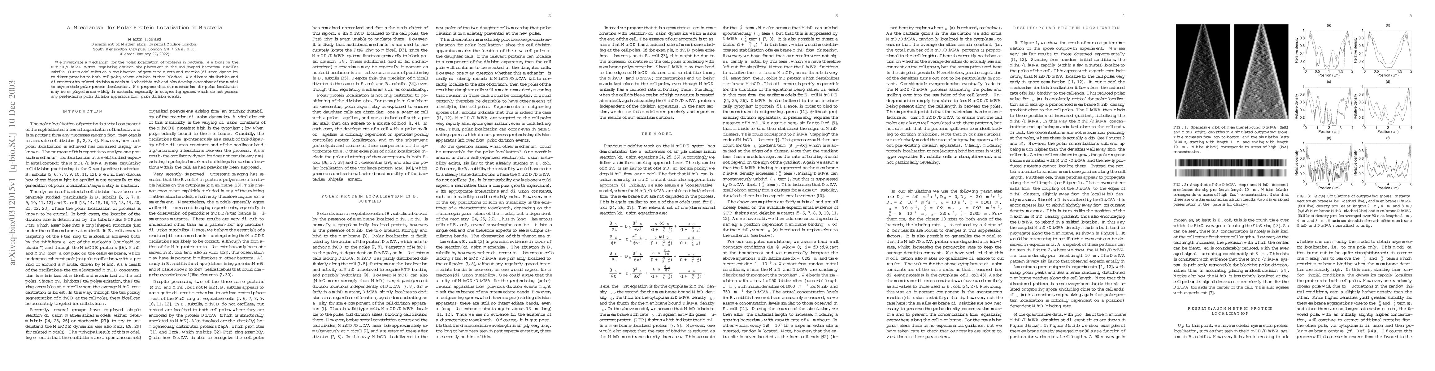 We investigate a mechanism for the polar localization of proteins in bacteria. We focus on the MinCD/DivIVA system regulating division site placement in the rod-shaped bacterium Bacillus subtilis. Our model relies on a combination of geometric effects and reaction-diffusion dynamics to direct proteins to both cell poles, where division is then blocked. We discuss similarities and differences with related division models in Escherichia coli and also develop extensions of the model to asymmetric polar protein localization. We propose that our mechanism for polar localization may be employed more widely in bacteria, especially in outgrowing spores, which do not possess any pre-existing polar division apparatus from prior division events.
