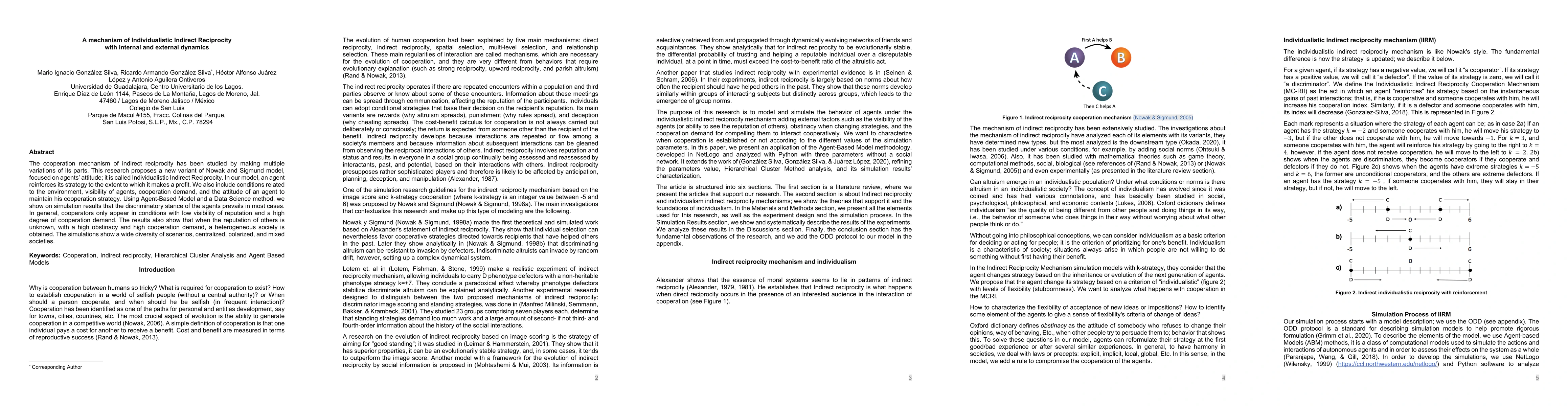Individualistic Indirect Reciprocity shows that discriminatory behavior prevails in most cases, with cooperators appearing only under low visibility of reputation and high cooperation demand. The model simulates diverse societies, including centralized, polarized, and mixed ones.