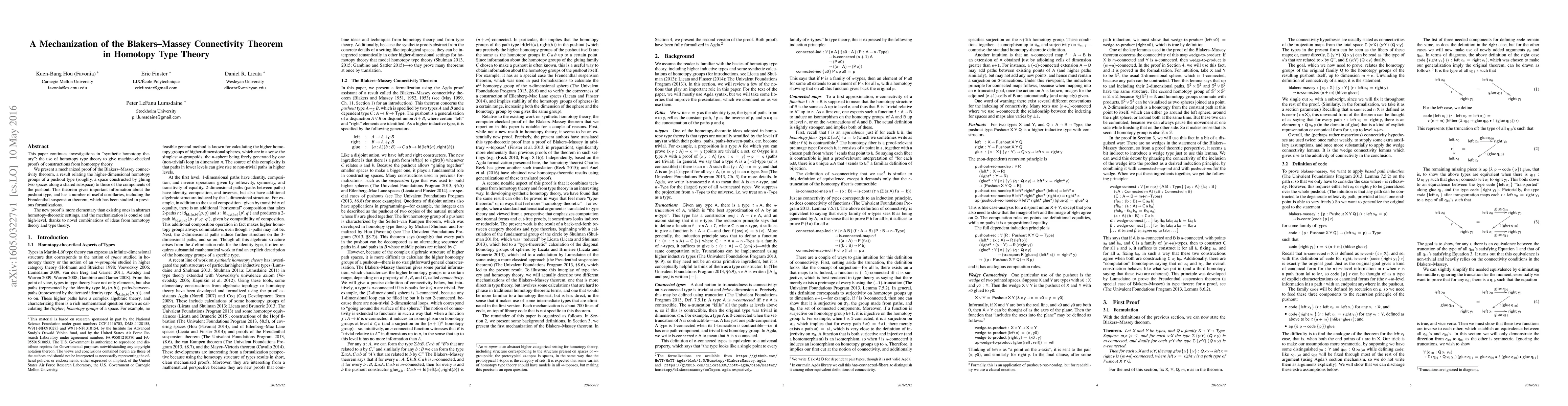 This paper presents a machine-checked proof of the Blakers-Massey connectivity theorem within homotopy type theory, leveraging novel combinations of homotopy and type theory to achieve a concise, high-level mechanization. The theorem elucidates relationships between higher-dimensional homotopy groups in pushout types and their components.