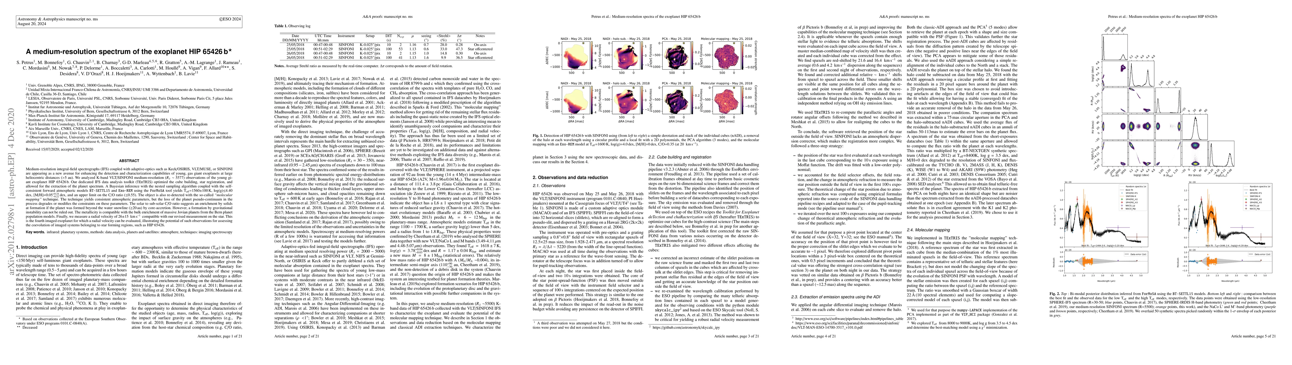 This paper presents a medium-resolution spectrum of the exoplanet HIP 65426 b using VLT/SINFONI, revealing atmospheric parameters and suggesting a solar to sub-solar C/O ratio. The findings support the potential for core-accretion or gravitational instability formation scenarios.