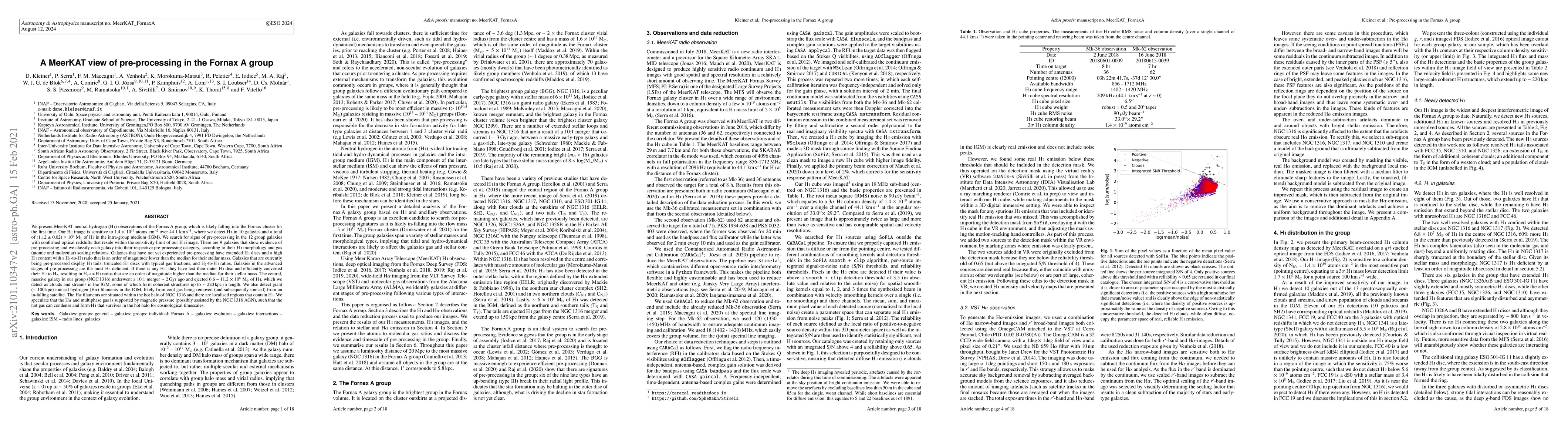 This study uses MeerKAT telescope data to detect neutral hydrogen in 10 galaxies of the Fornax A group, revealing signs of pre-processing with different stages of galaxy evolution.