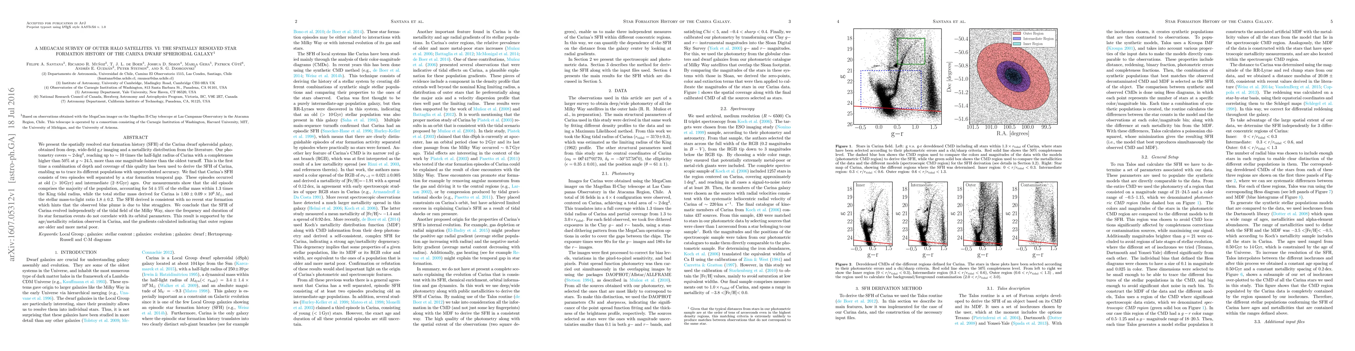This paper provides a spatially resolved star formation history of the Carina dwarf spheroidal galaxy, revealing two distinct star formation episodes separated by a temporal gap. The old episode dominates, comprising most of the stellar mass, while no recent star formation is detected, suggesting the blue plume is due to blue stragglers.