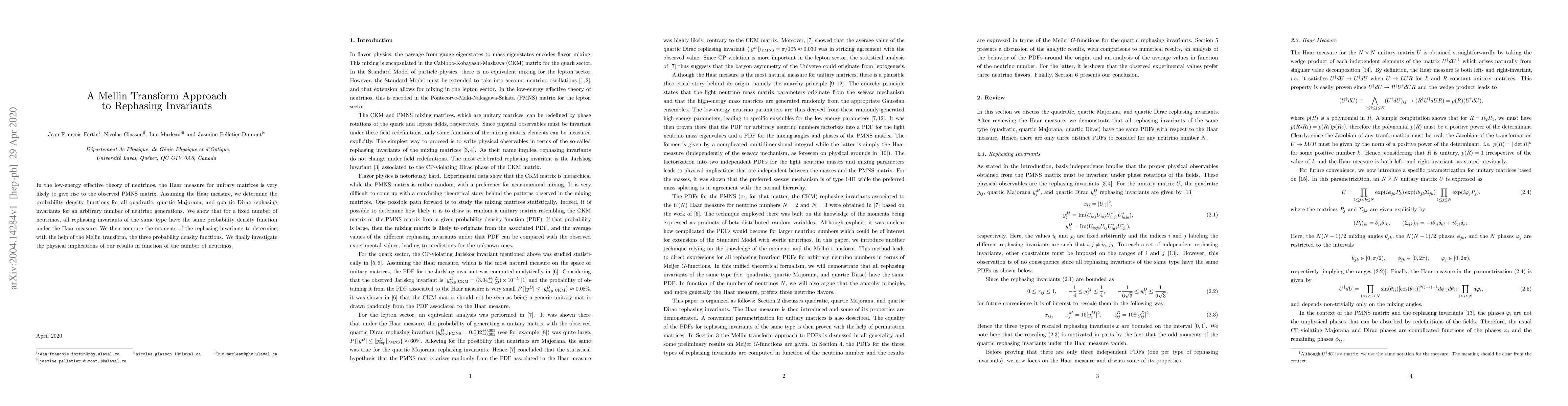 This research employs the Mellin transform to determine the probability density functions for rephasing invariants in the low-energy effective theory of neutrinos, showing that under the Haar measure, invariants of the same type share the same probability distribution. It also investigates the physical implications of these findings based on the number of neutrino generations.