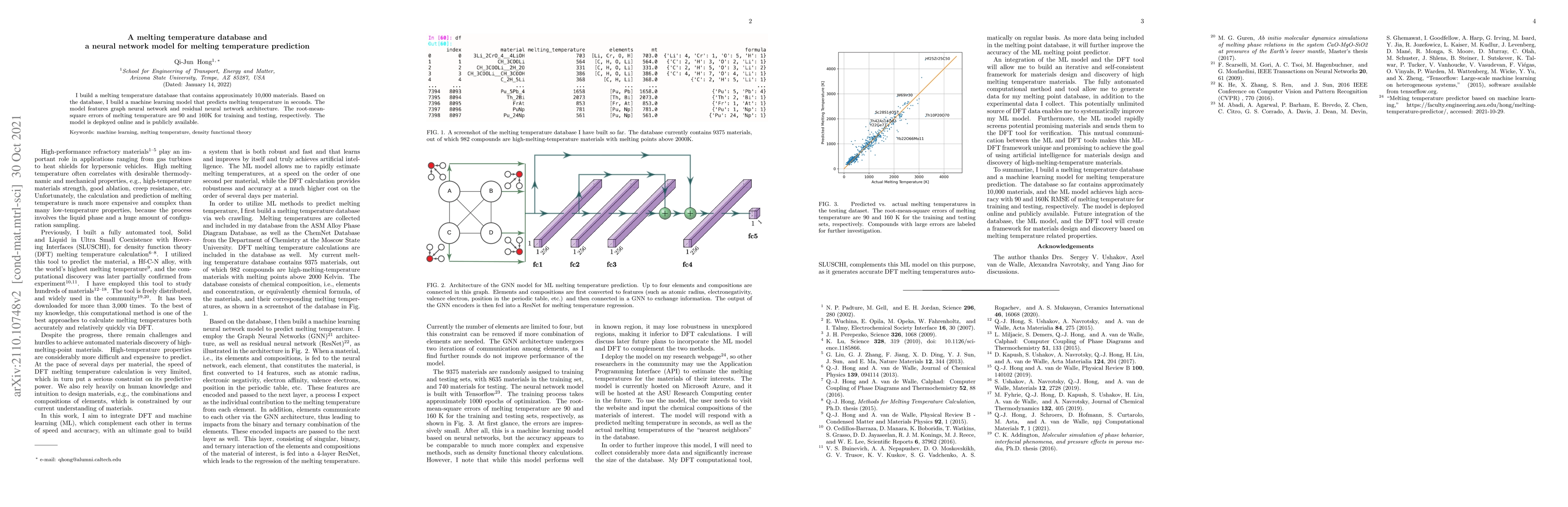 Researchers built a melting temperature database of 10,000 materials and developed a neural network model that accurately predicts melting temperatures with low root-mean-square errors.