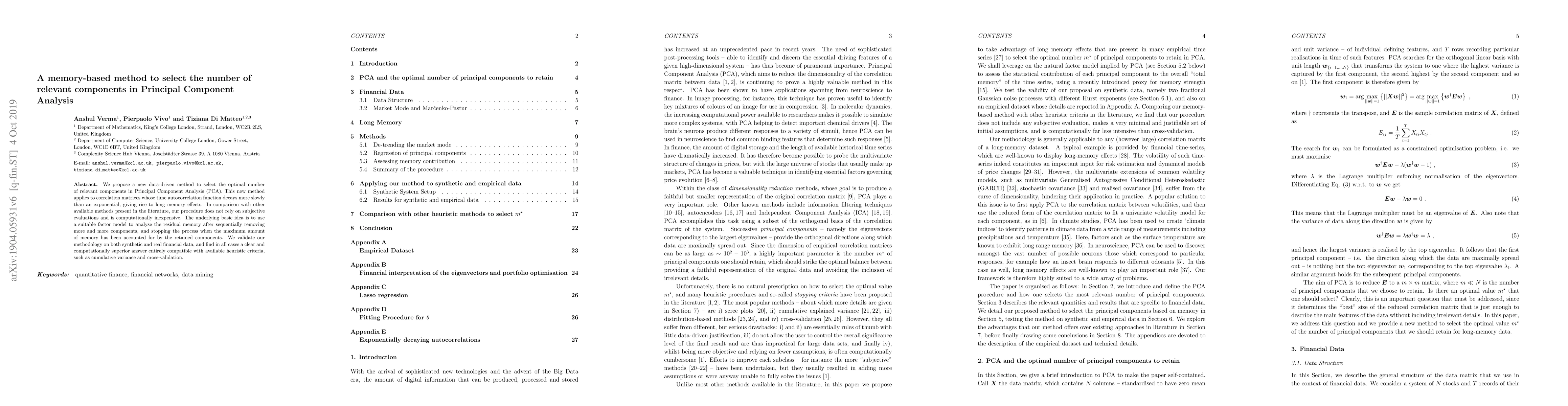 This paper introduces a memory-based method for determining the optimal number of relevant components in PCA, particularly for datasets with long memory effects. Unlike existing methods, it is objective and computationally efficient, utilizing a factor model to analyze residual memory after sequentially removing components.
