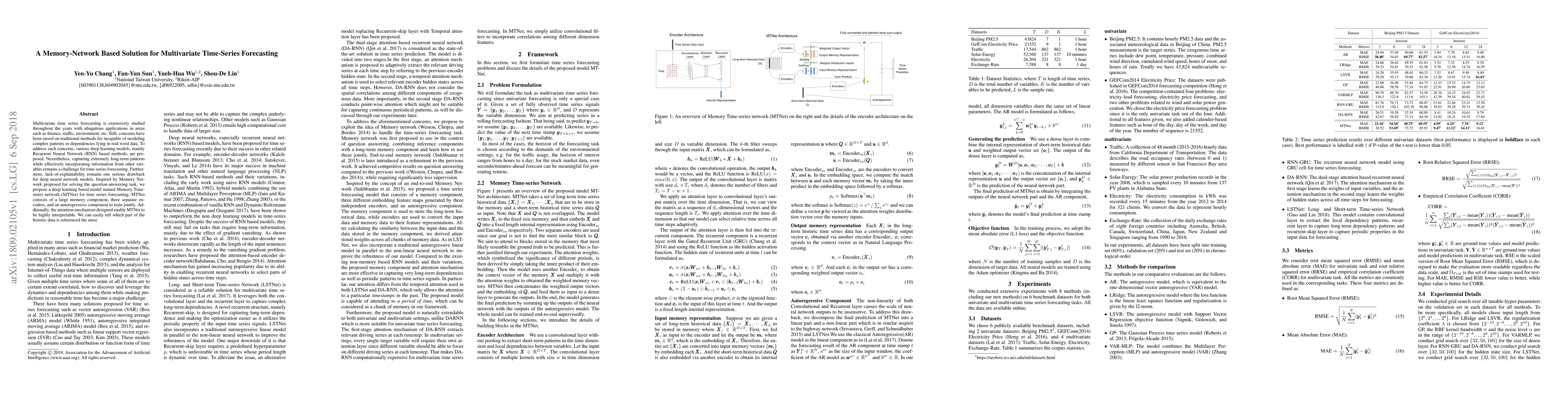 This paper proposes Memory Time-series network (MTNet), a deep learning model combining memory networks and autoregressive components for multivariate time-series forecasting, aiming to capture long-term dependencies and improve interpretability through an attention mechanism.