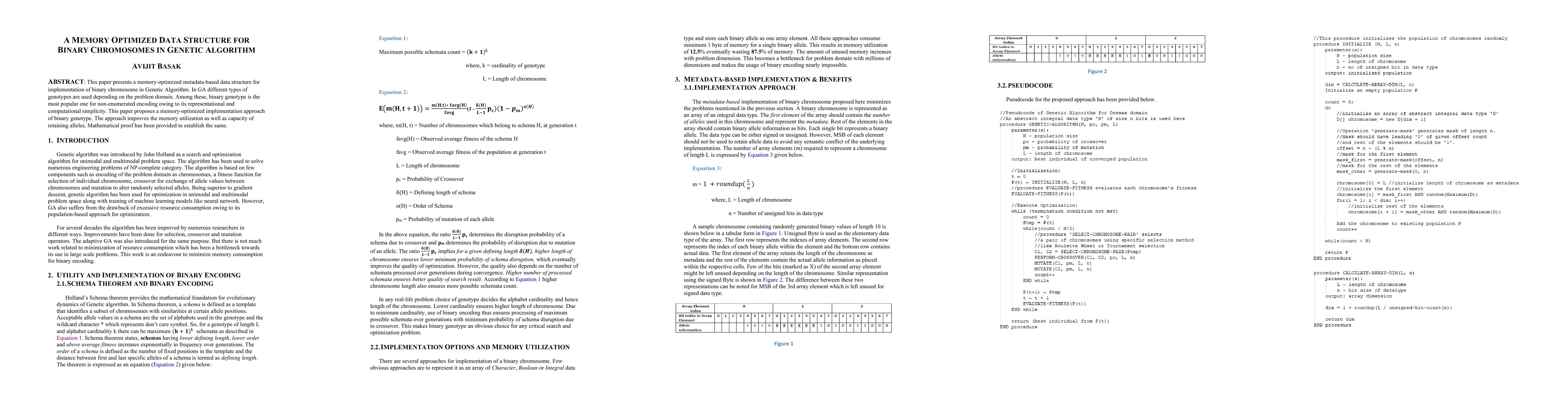 A memory-optimized metadata-based data structure is presented to improve memory utilization in binary chromosomes of Genetic Algorithm.