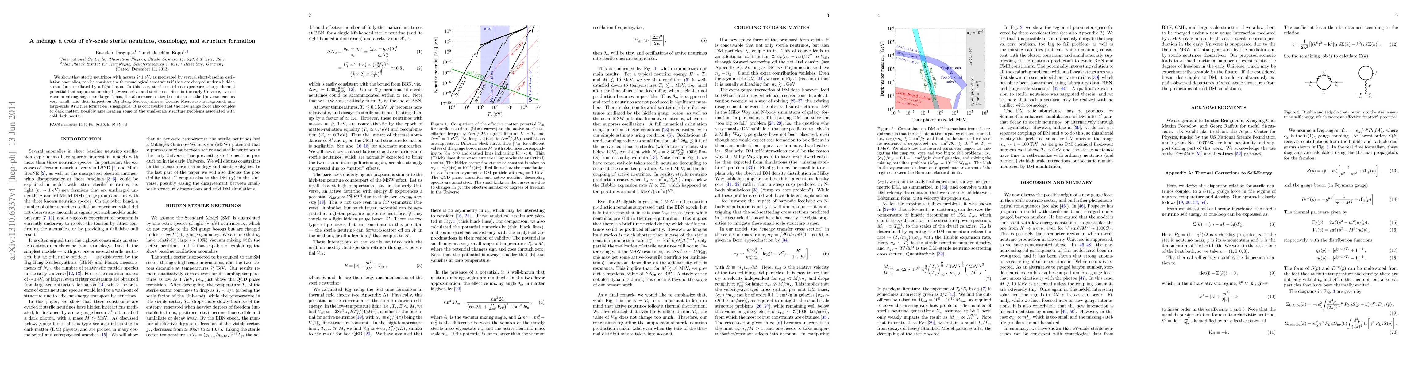 This paper explores the consistency of eV-scale sterile neutrinos with cosmology when they are charged under a hidden sector force, showing that their impact on Big Bang Nucleosynthesis, Cosmic Microwave Background, and large-scale structure formation remains negligible. It also suggests a potential coupling to dark matter that could alleviate small-scale structure issues in cold dark matter models.