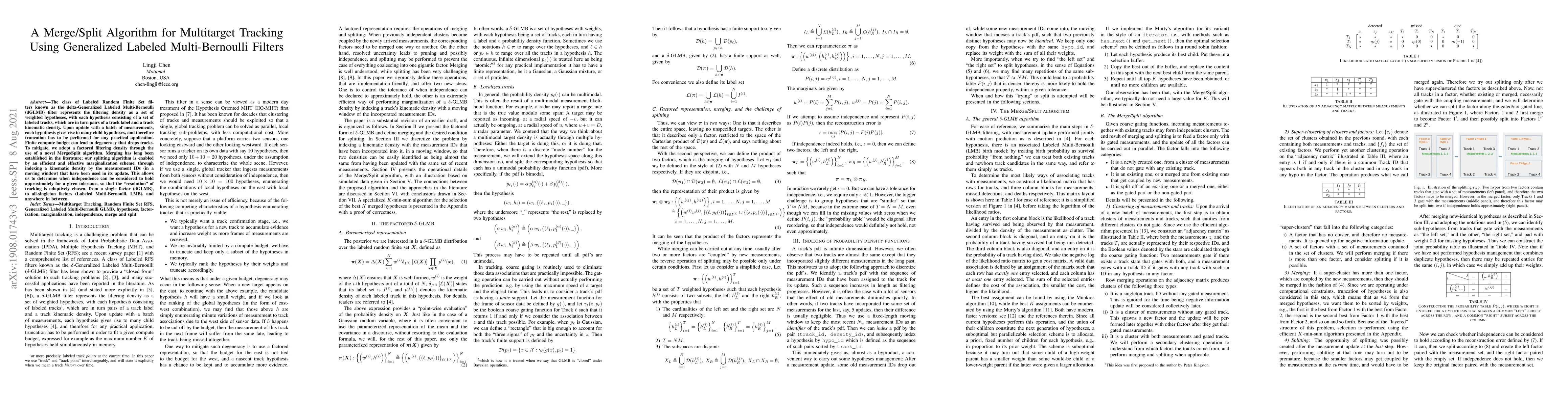 This paper proposes a Merge/Split algorithm for the delta-Generalized Labeled Multi-Bernoulli (dGLMB) filter to improve multitarget tracking efficiency. The algorithm adaptively adjusts the "resolution" of tracking by determining when independence holds, thus optimizing computational resources and mitigating track drop issues.