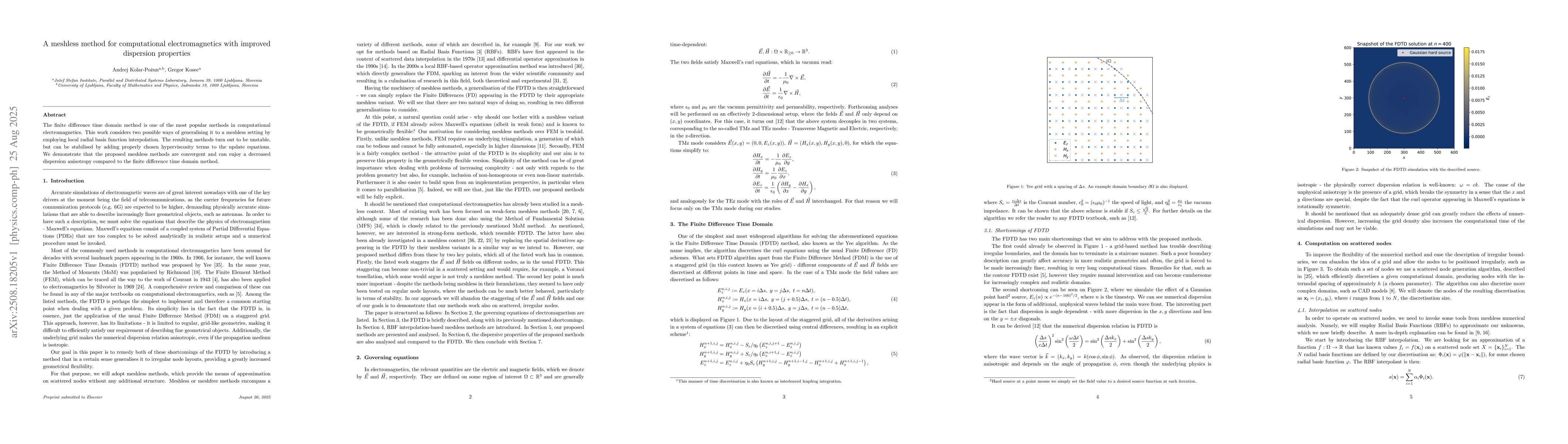 The finite difference time domain method is one of the most popular methods in computational electromagnetics. This work considers two possible ways of generalising it to a meshless setting by employing local radial basis function interpolation. The resulting methods turn out to be unstable, but can be stabilised by adding properly chosen hyperviscosity terms to the update equations. We demonstrate that the proposed meshless methods are convergent and can enjoy a decreased dispersion anisotropy compared to the finite difference time domain method.