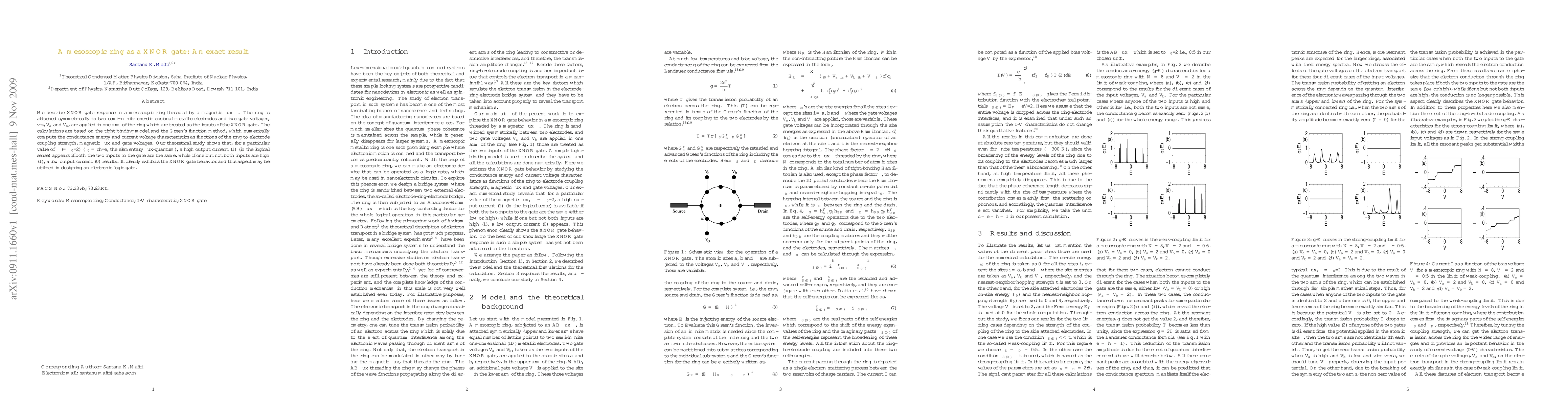 This paper presents a theoretical study showing that a mesoscopic ring threaded by a specific magnetic flux behaves as an XNOR gate, with high output current when both input voltages are the same and low output current when only one input is high. The calculations use the tight-binding model and Green's function method to determine conductance and current-voltage characteristics.
