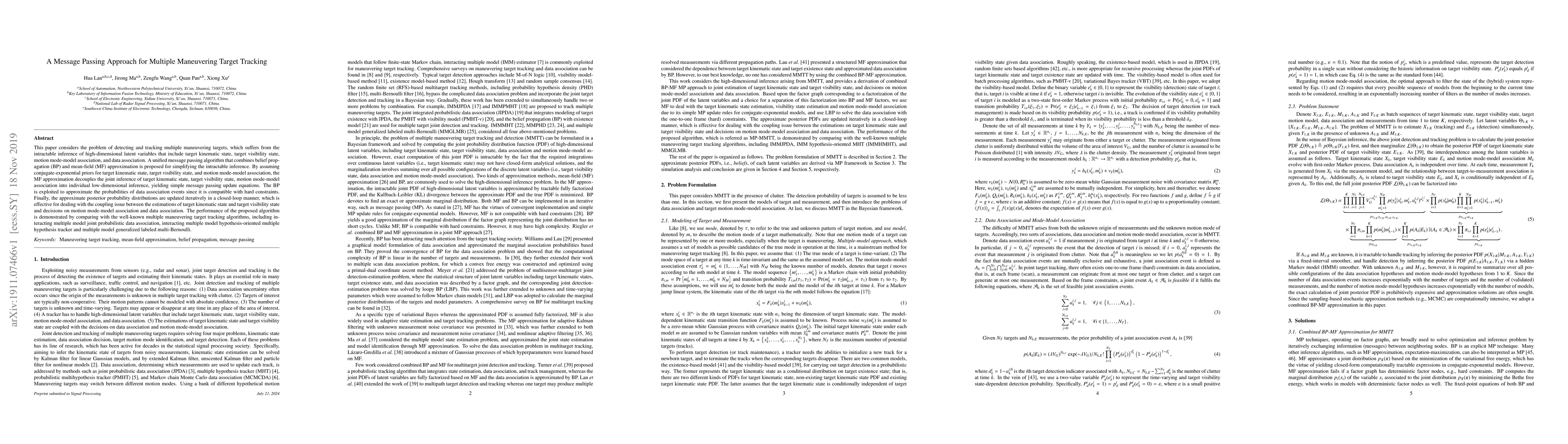 This paper proposes a message passing algorithm combining belief propagation and mean-field approximation to simplify the inference for tracking multiple maneuvering targets. The algorithm iteratively updates approximate posterior distributions, effectively handling the coupling between target state estimations and data association.