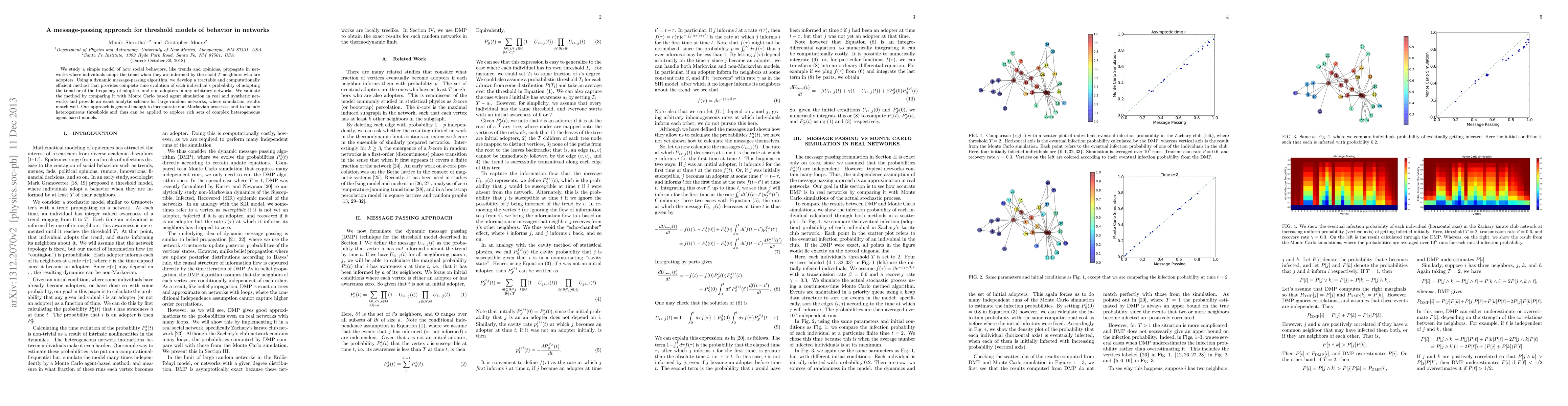 A message-passing approach is developed to simulate how social behaviors spread in networks, providing a tractable method for studying complex agent-based models with threshold-like behavior.