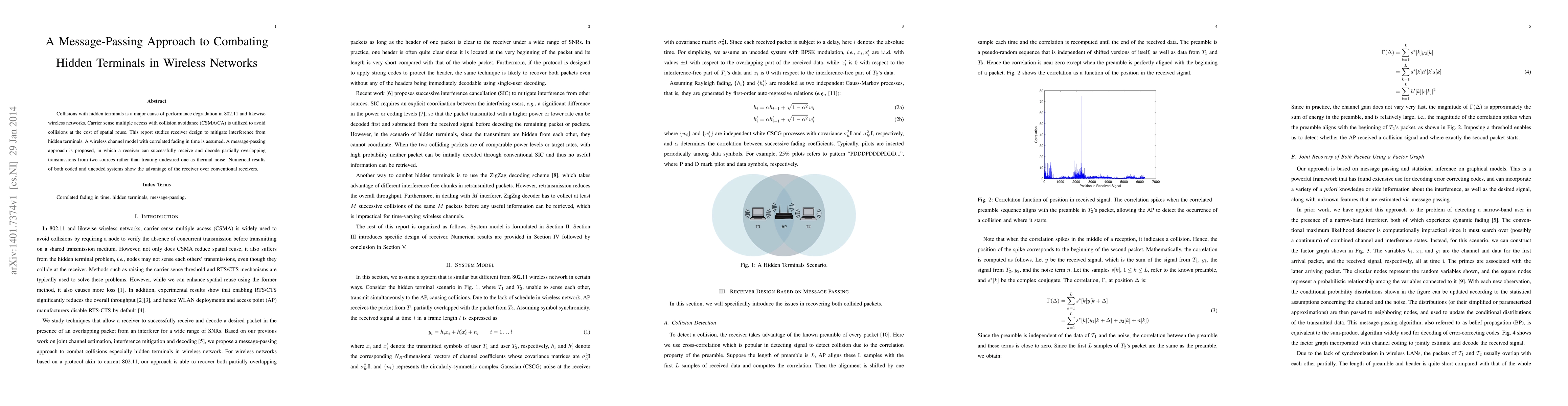 Researchers developed a message-passing approach to combat hidden terminals in wireless networks, allowing receivers to successfully decode partially overlapping transmissions from two sources.