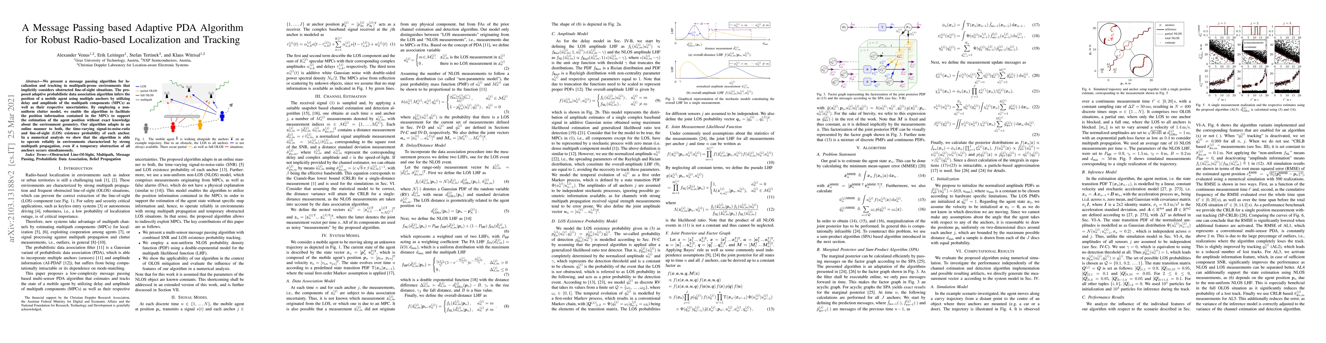 This research introduces an adaptive message passing algorithm for localization and tracking in environments with multipath signals, effectively handling obstructed line-of-sight situations. The algorithm utilizes delay, amplitude, and uncertainties of multipath components, along with a nonuniform clutter model, to estimate the position of a mobile agent using multiple anchors. It dynamically adjusts to varying signal quality and LOS existence probability, demonstrating reliable performance even during temporary anchor obstructions.