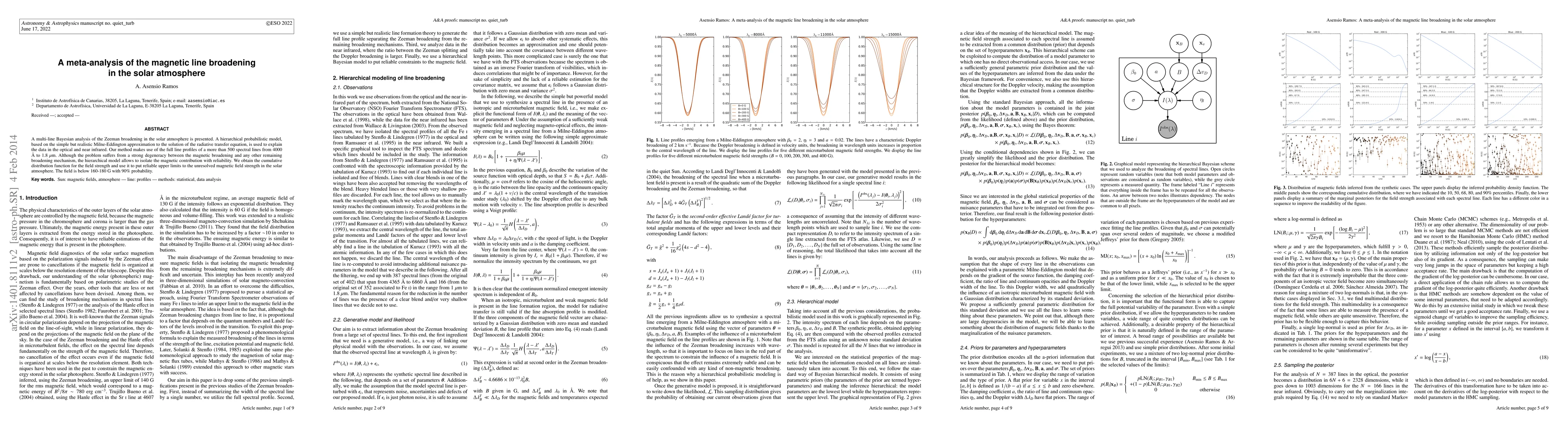 This paper presents a Bayesian analysis of Zeeman broadening in the solar atmosphere using a hierarchical probabilistic model based on the Milne-Eddington approximation. The study isolates the magnetic contribution from over 500 spectral lines, concluding that the unresolved magnetic field strength is below 160-180 G with 90% probability.