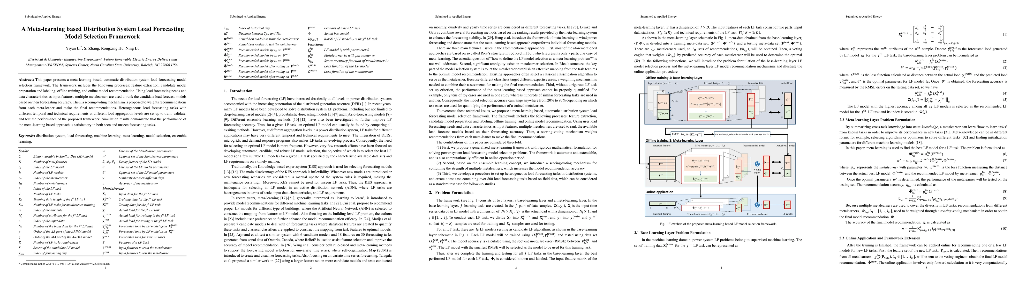 This paper introduces a meta-learning framework for automatic selection of distribution system load forecasting models, employing feature extraction, candidate model ranking, and a scoring-voting mechanism for final recommendations. Simulation results show satisfactory performance in both familiar and novel forecasting scenarios.
