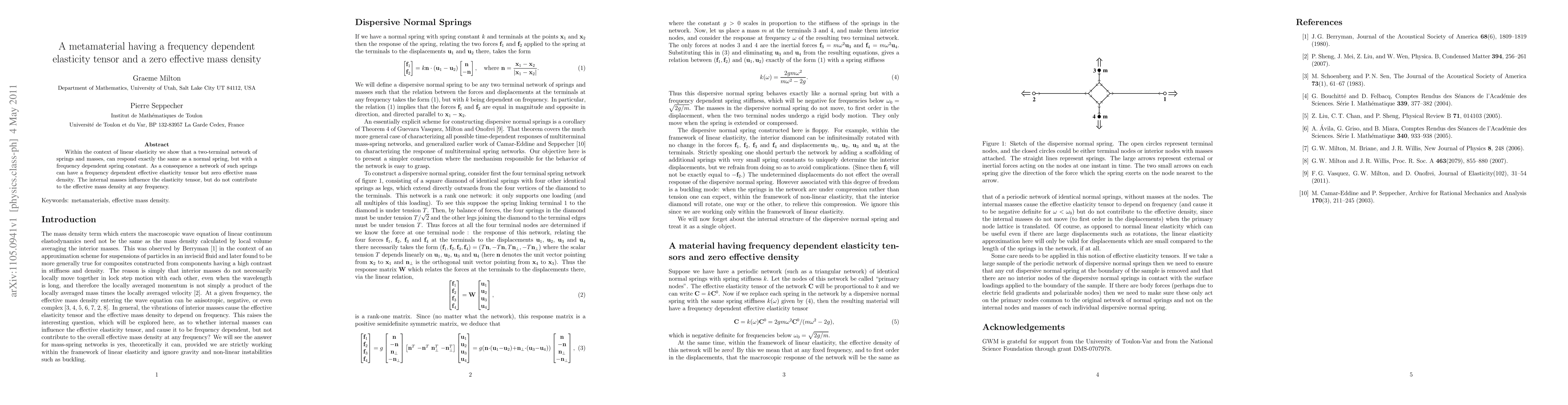 Within the context of linear elasticity we show that a two-terminal network of springs and masses, can respond exactly the same as a normal spring, but with a frequency dependent spring constant. As a consequence a network of such springs can have a frequency dependent effective elasticity tensor but zero effective mass density. The internal masses influence the elasticity tensor, but do not contribute to the effective mass density at any frequency.