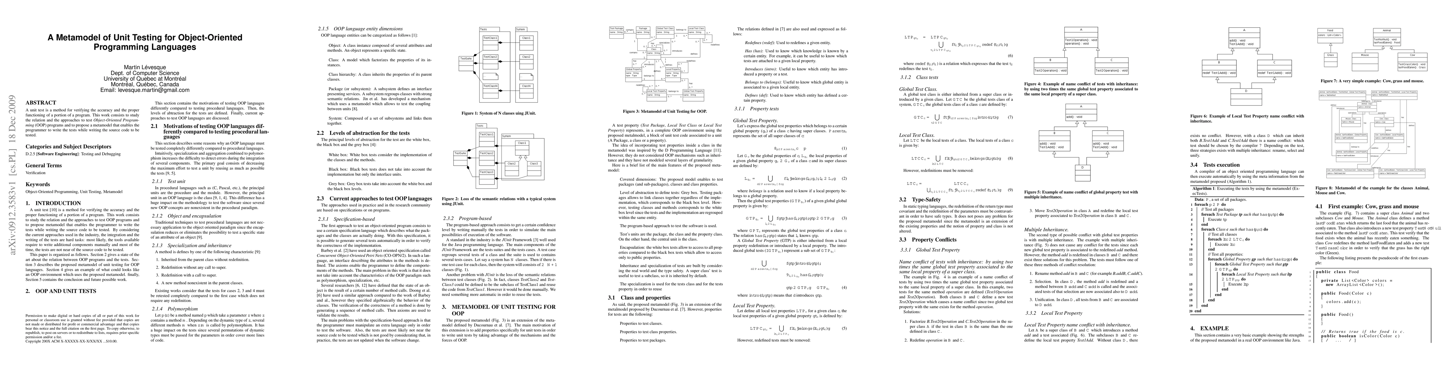 A unit test is a method for verifying the accuracy and the proper functioning of a portion of a program. This work consists to study the relation and the approaches to test Object-Oriented Programming (OOP) programs and to propose a metamodel that enables the programmer to write the tests while writing the source code to be tested by exploiting the key features of OOP programming languages such as inheritance, polymorphism, etc.