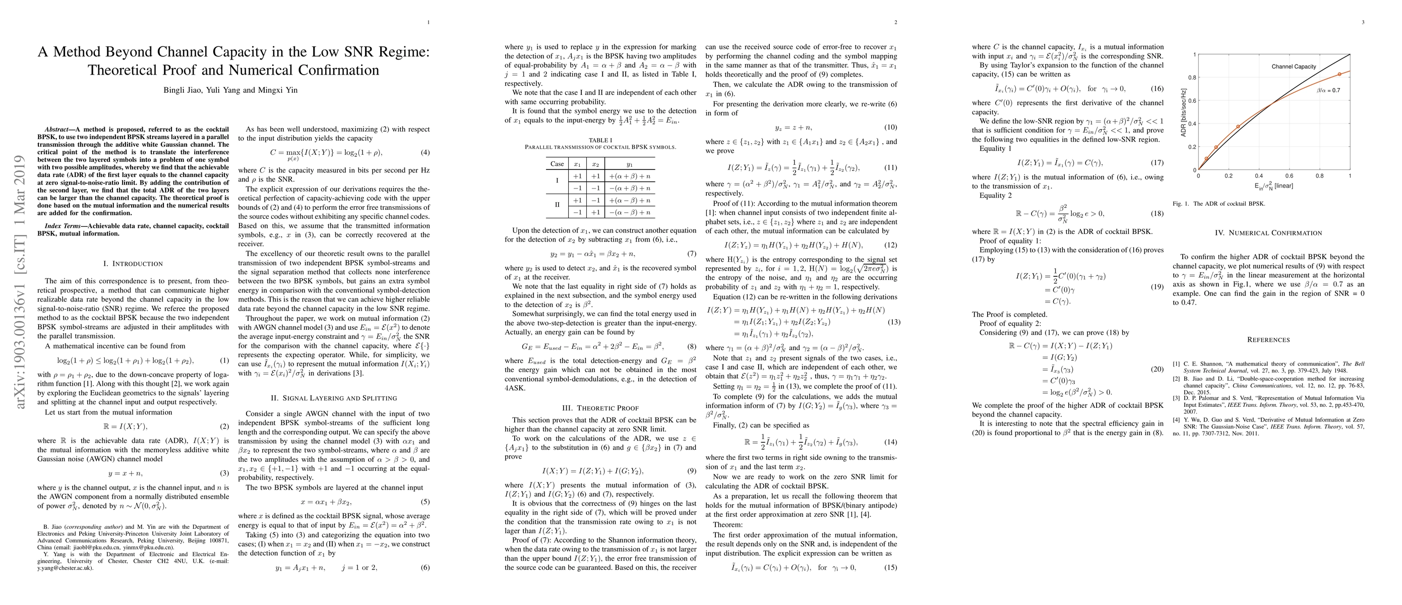 A method is proposed, referred to as the cocktail BPSK, to use two independent BPSK streams layered in a parallel transmission through the additive white Gaussian channel. The critical point of the method is to translate the interference between the two layered symbols into a problem of one symbol with two possible amplitudes, whereby we find that the achievable data rate (ADR) of the first layer equals to the channel capacity at zero signal-to-noise-ratio limit. By adding the contribution of the second layer, we find that the total ADR of the two layers can be larger than the channel capacity. The theoretical proof is done based on the mutual information and the numerical results are added for the confirmation.