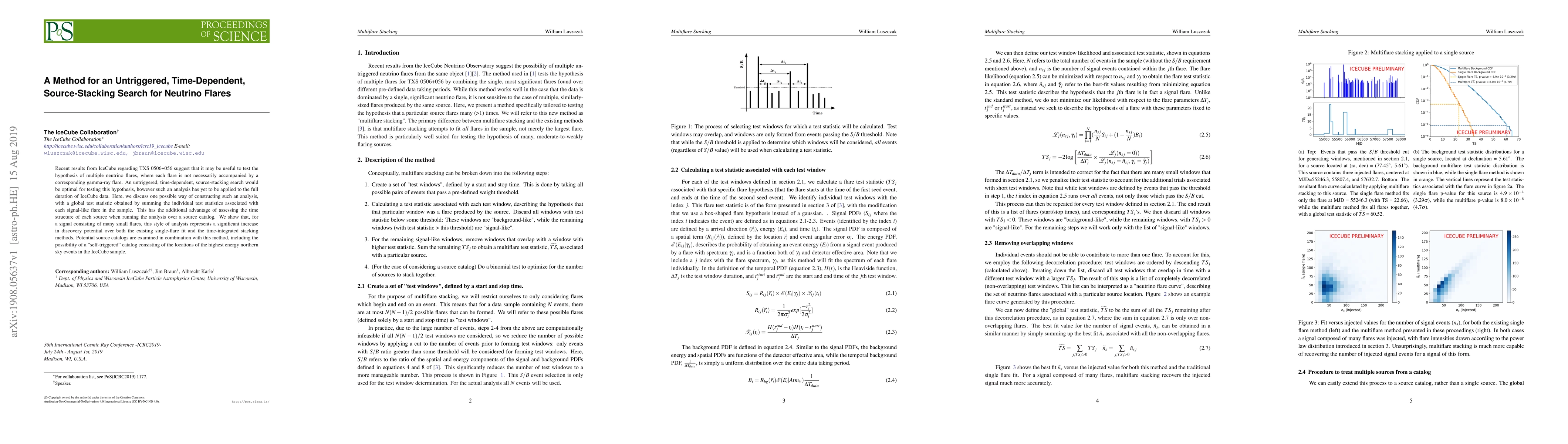 Recent results from IceCube regarding TXS 0506+056 suggest that it may be useful to test the hypothesis of multiple neutrino flares, where each flare is not necessarily accompanied by a corresponding gamma-ray flare. An untriggered, time-dependent, source-stacking search would be optimal for testing this hypothesis, however such an analysis has yet to be applied to the full duration of IceCube data. Here, we discuss one possible way of constructing such an analysis, with a global test statistic obtained by summing the individual test statistics associated with each signal-like flare in the sample. This has the additional advantage of assessing the time structure of each source when running the analysis over a source catalog. We show that, for a signal consisting of many small flares, this style of analysis represents a significant increase in discovery potential over both the existing single-flare fit and the time-integrated stacking methods. Potential source catalogs are examined in combination with this method, including the possibility of a "self-triggered" catalog consisting of the locations of the highest energy northern sky events in the IceCube sample.
