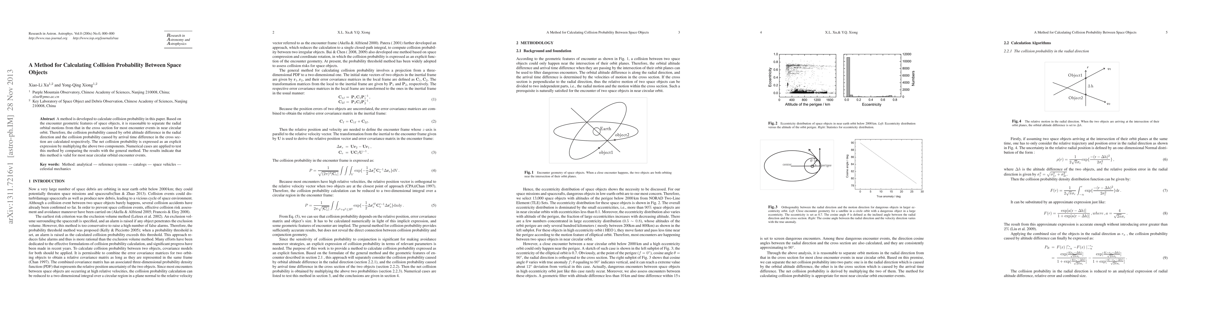 A method to calculate collision probability between space objects is developed, separating radial and cross-section probabilities for near circular orbits and showing promise in comparing with general methods.