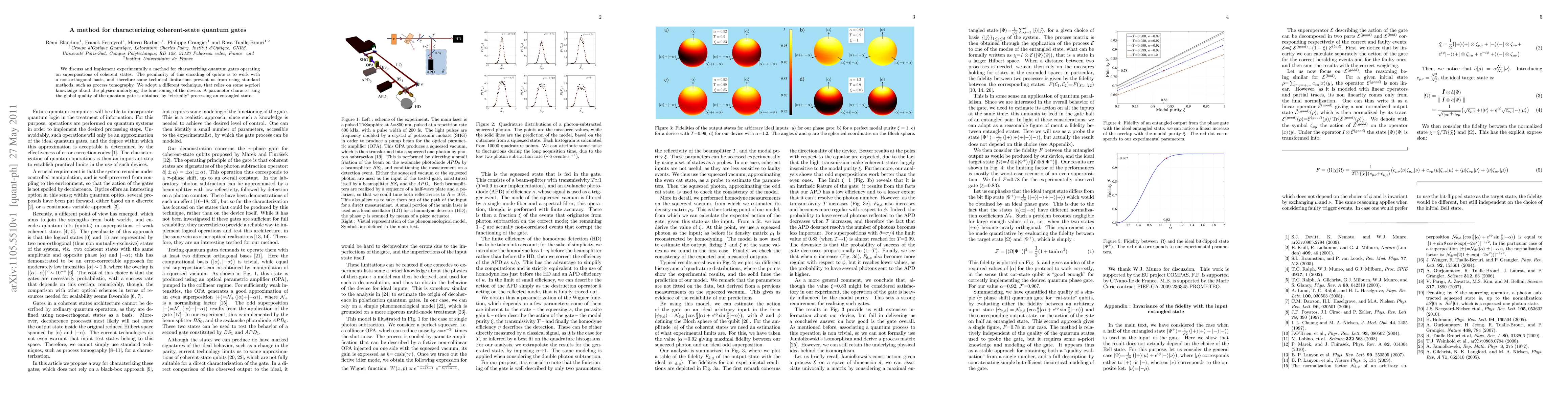 We discuss and implement experimentally a method for characterizing quantum gates operating on superpositions of coherent states. The peculiarity of this encoding of qubits is to work with a non-orthogonal basis, and therefore some technical limitations prevent us from using standard methods, such as process tomography. We adopt a different technique, that relies on some a-priori knowledge about the physics underlying the functioning of the device. A parameter characterizing the global quality of the quantum gate is obtained by \virtually" processing an entangled state.