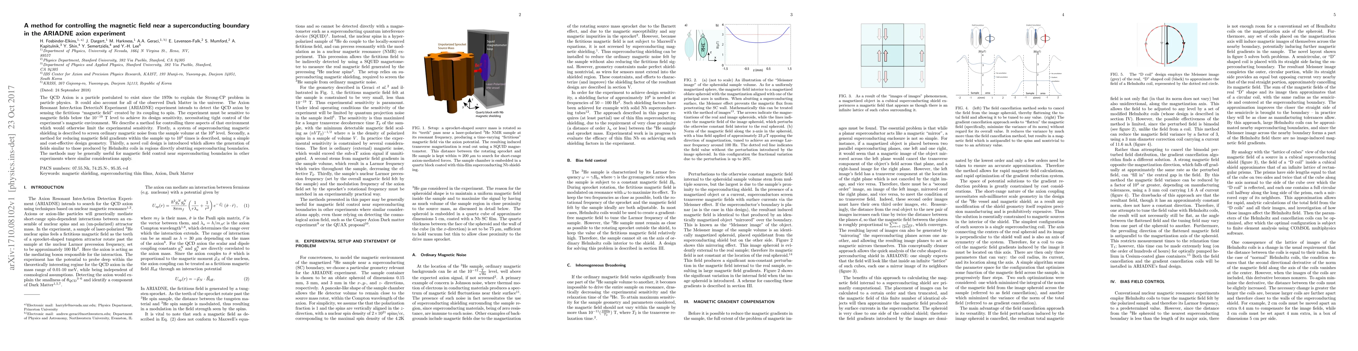 The QCD Axion is a particle postulated to exist since the 1970s to explain the Strong-CP problem in particle physics. It could also account for all of the observed Dark Matter in the universe. The Axion Resonant InterAction DetectioN Experiment (ARIADNE) experiment intends to detect the QCD axion by sensing the fictitious "magnetic field" created by its coupling to spin. The experiment must be sensitive to magnetic fields below the $10^{-19}$ T level to achieve its design sensitivity, necessitating tight control of the experiment's magnetic environment. We describe a method for controlling three aspects of that environment which would otherwise limit the experimental sensitivity. Firstly, a system of superconducting magnetic shielding is described to screen ordinary magnetic noise from the sample volume at the $10^8$ level. Secondly, a method for reducing magnetic field gradients within the sample up to $10^2$ times is described, using a simple and cost-effective design geometry. Thirdly, a novel coil design is introduced which allows the generation of fields similar to those produced by Helmholtz coils in regions directly abutting superconducting boundaries. The methods may be generally useful for magnetic field control near superconducting boundaries in other experiments where similar considerations apply.