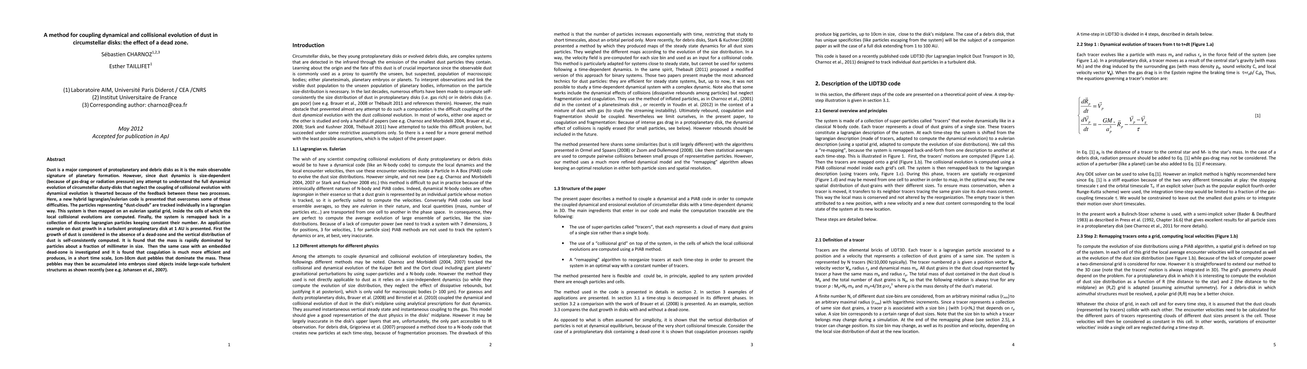 Dust is a major component of protoplanetary and debris disks as it is the main observable signature of planetary formation. However, since dust dynamics is size-dependent (because of gas-drag or radiation pressure) any attempt to understand the full dynamical evolution of circumstellar dusty-disks that neglect the coupling of collisional evolution with dynamical evolution is thwarted because of the feedback between these two processes. Here, a new hybrid lagrangian/eulerian code is presented that overcomes some of these difficulties. The particles representing "dust-clouds" are tracked individually in a lagrangian way. This system is then mapped on an eulerian spatial grid, inside the cells of which the local collisional evolutions are computed. Finally, the system is remapped back in a collection of discrete lagrangian particles keeping constant their number. An application example on dust growth in a turbulent protoplanetary disk at 1 AU is presented. First the growth of dust is considered in the absence of a dead-zone and the vertical distribution of dust is self-consistently computed. It is found that the mass is rapidly dominated by particles about a fraction of millimeter in size. Then the same case with an embedded dead-zone is investigated and It is found that coagulation is much more efficient and produces, in a short time scale, 1cm-10cm dust pebbles that dominate the mass. These pebbles may then be accumulated into embryos sized objects inside large-scale turbulent structures as shown recently (see e.g. Johansen et al., 2007).