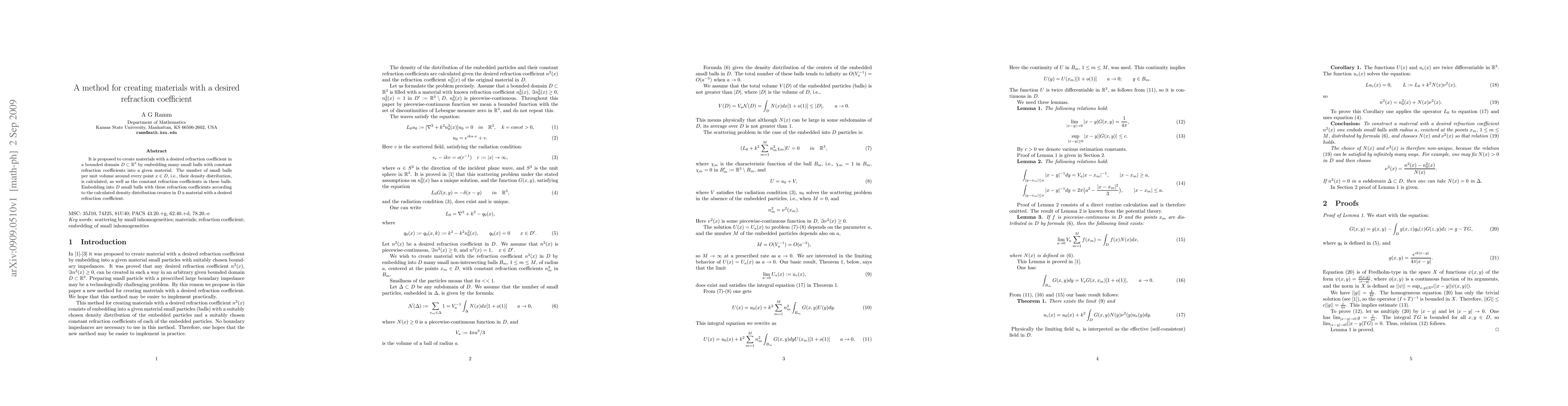 This paper proposes a method to fabricate materials with a specified refraction coefficient by embedding numerous small balls with uniform refraction coefficients into a base material. The method calculates the required density distribution and refraction coefficients for the small balls to achieve the desired overall refraction coefficient in a specified domain.