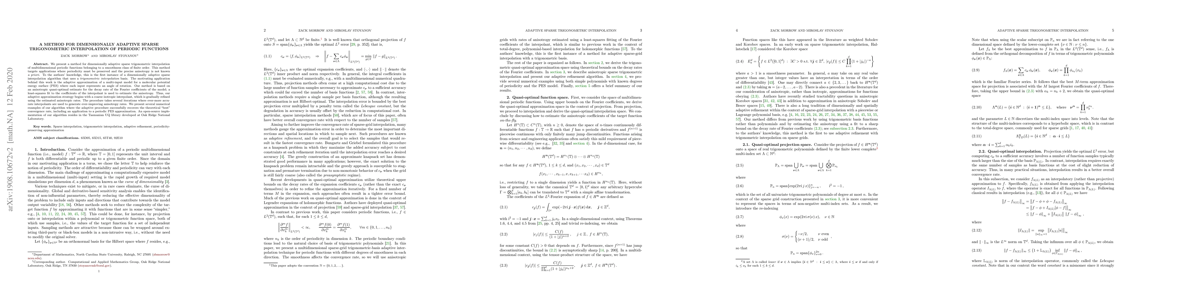 This paper introduces a novel dimensionally adaptive sparse trigonometric interpolation method for multidimensional periodic functions, particularly useful for applications like molecular potential energy surfaces where precise anisotropy is unknown. The method iteratively refines an initial isotropic interpolant using anisotropic estimates of Fourier coefficient decay rates, achieving optimal convergence rates as demonstrated in numerical examples.