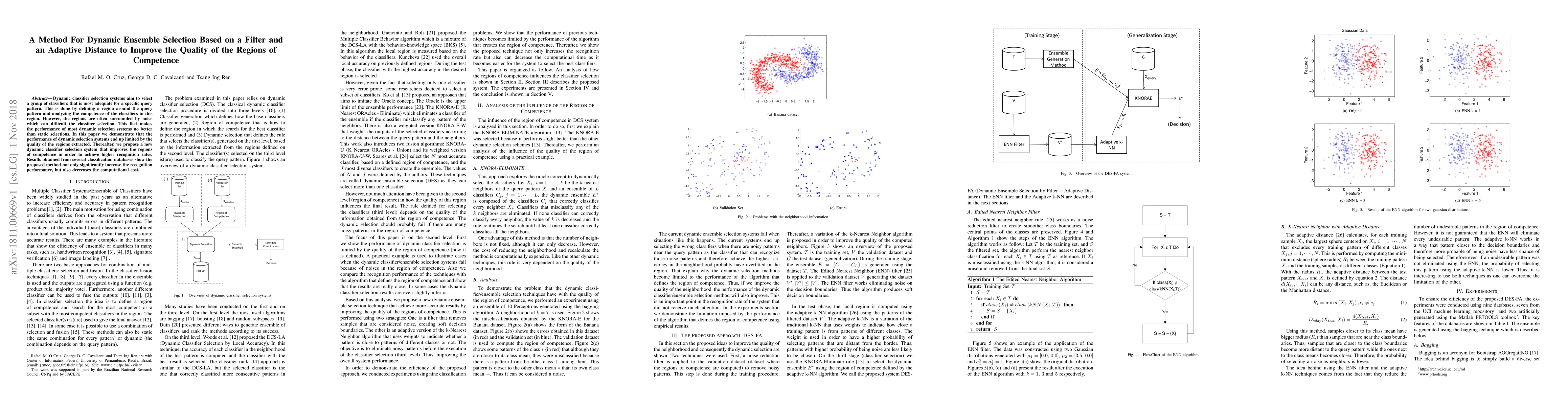 This paper proposes a dynamic ensemble selection method that enhances the quality of competence regions by using a filter and an adaptive distance metric, leading to improved recognition rates and reduced computational costs compared to static selections. Experimental results from various classification databases validate the effectiveness of the proposed approach.