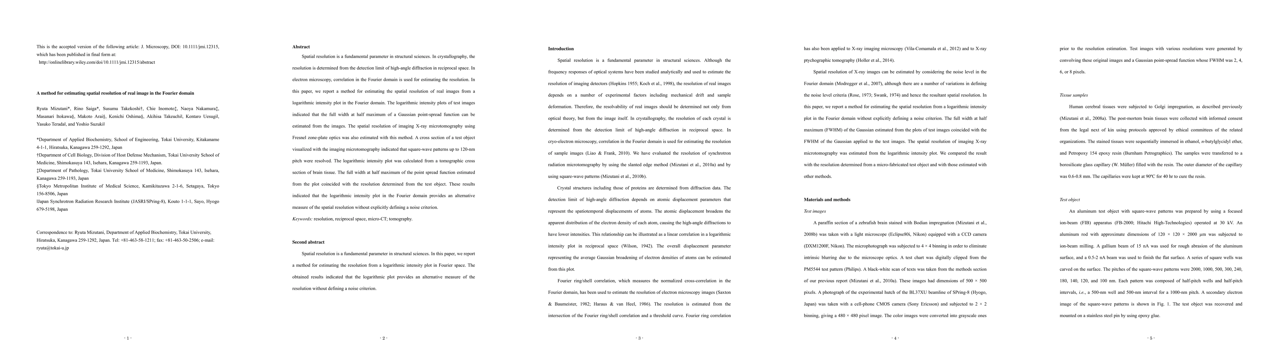 A new method estimates spatial resolution from Fourier domain intensity plots, showing promise for alternative methods in crystallography and electron microscopy.