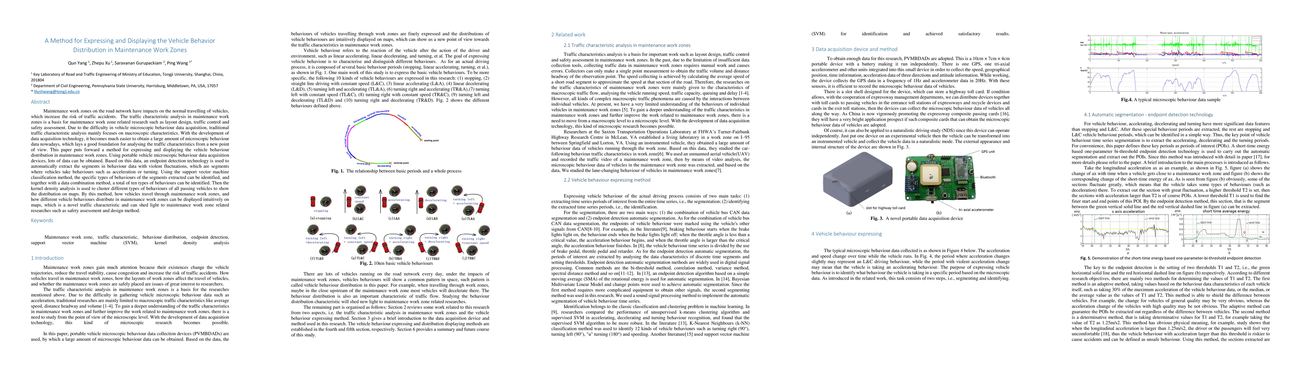 A method for analyzing vehicle behavior in maintenance work zones is presented, using microscopic data to identify 10 types of behaviors and display their distribution on maps, providing insights for safety assessment and design.