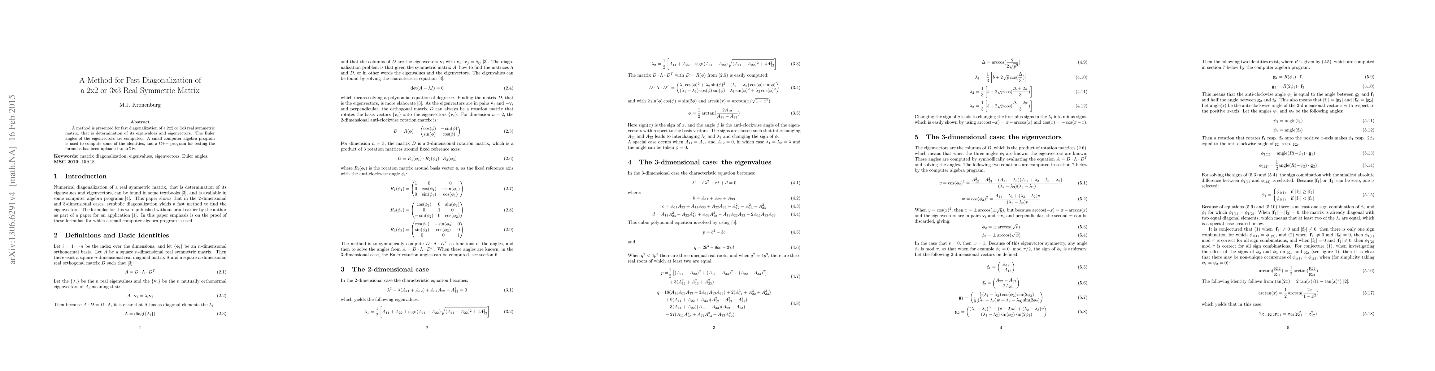 A method for efficiently diagonalizing 2x2 or 3x3 real symmetric matrices has been developed, allowing for the computation of eigenvalues and eigenvectors in a fast and accurate manner.