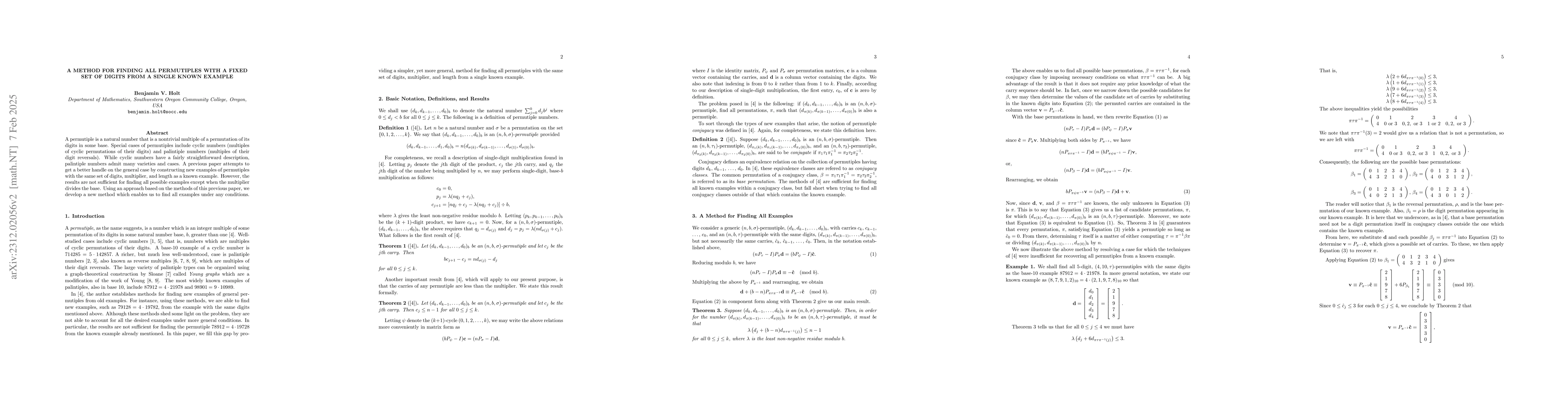 This paper introduces a novel method to find all permutiples—numbers that are multiples of permutations of their digits—from a single known example, addressing limitations of previous approaches. The new method ensures the discovery of all possible permutiples under any conditions, not just when the multiplier divides the base.