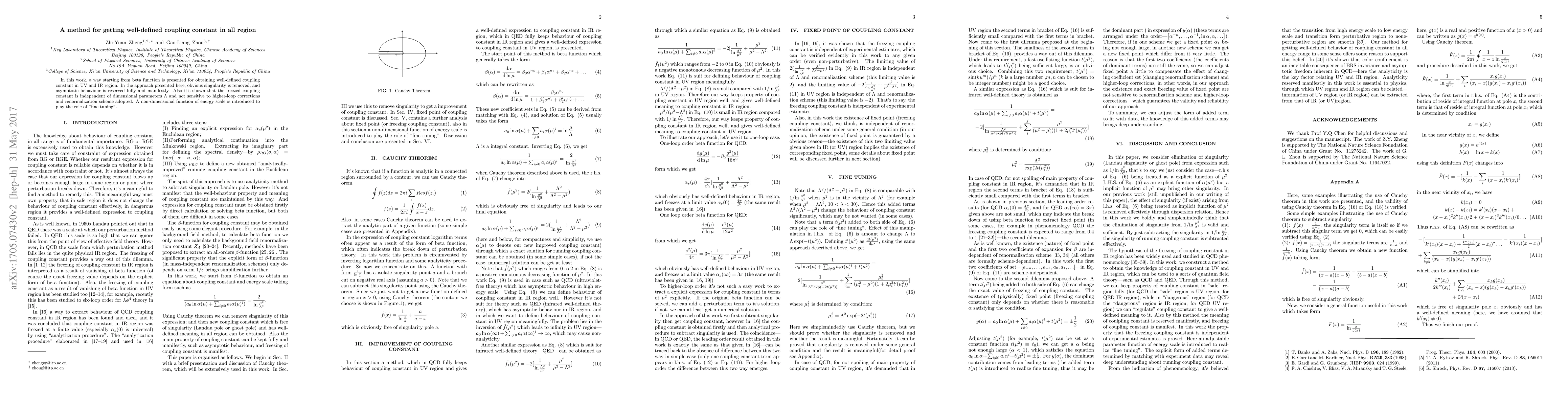 In this work, a way starting from beta function is presented for obtaining well-defined coupling constant in UV and IR region. In the approach presented here, obvious singularity is removed, and asymptotic behaviour is reserved fully and manifestly. Also it's shown that the freezed coupling constant is independent of dimensional parameters $\Lambda$ and not sensitive to higher-loop corrections and renormalization scheme adopted. A non-dimensional function of energy scale is introduced to play the role of "fine tuning".