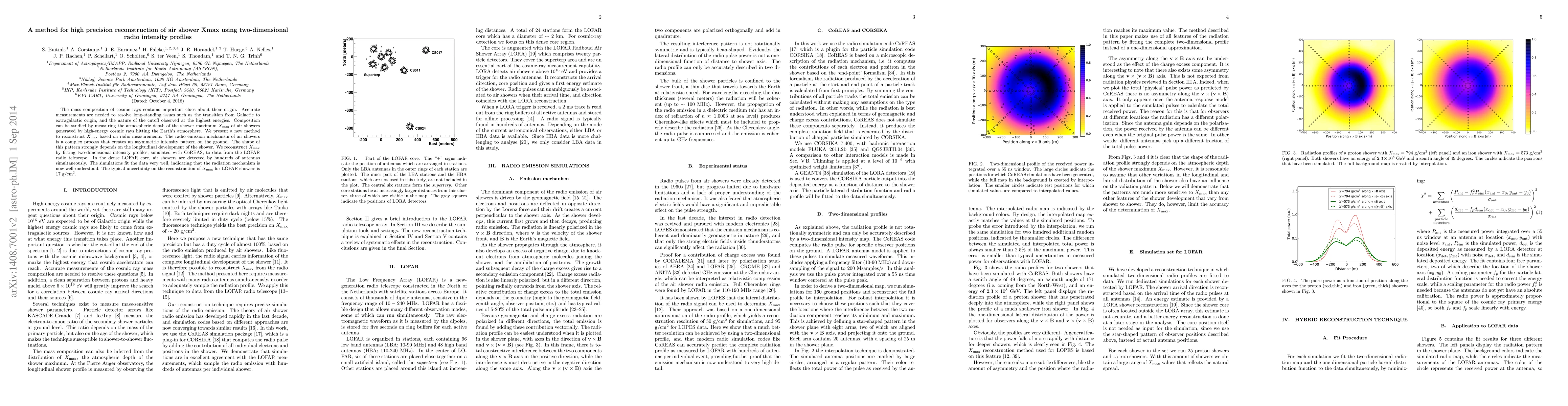 The mass composition of cosmic rays contains important clues about their origin. Accurate measurements are needed to resolve long-standing issues such as the transition from Galactic to extragalactic origin, and the nature of the cutoff observed at the highest energies. Composition can be studied by measuring the atmospheric depth of the shower maximum Xmax of air showers generated by high-energy cosmic rays hitting the Earth's atmosphere. We present a new method to reconstruct Xmax based on radio measurements. The radio emission mechanism of air showers is a complex process that creates an asymmetric intensity pattern on the ground. The shape of this pattern strongly depends on the longitudinal development of the shower. We reconstruct Xmax by fitting two-dimensional intensity profiles, simulated with CoREAS, to data from the LOFAR radio telescope. In the dense LOFAR core, air showers are detected by hundreds of antennas simultaneously. The simulations fit the data very well, indicating that the radiation mechanism is now well-understood. The typical uncertainty on the reconstruction of Xmax for LOFAR showers is 17 g/cm^2.