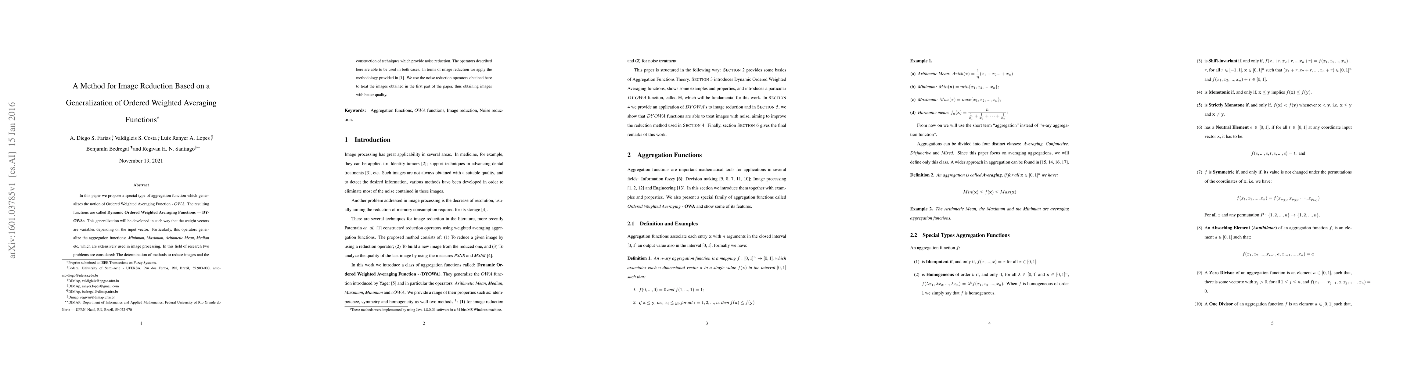 In this paper we propose a special type of aggregation function which generalizes the notion of Ordered Weighted Averaging Function - OWA. The resulting functions are called Dynamic Ordered Weighted Averaging Functions --- DYOWAs. This generalization will be developed in such way that the weight vectors are variables depending on the input vector. Particularly, this operators generalize the aggregation functions: Minimum, Maximum, Arithmetic Mean, Median, etc, which are extensively used in image processing. In this field of research two problems are considered: The determination of methods to reduce images and the construction of techniques which provide noise reduction. The operators described here are able to be used in both cases. In terms of image reduction we apply the methodology provided by Patermain et al. We use the noise reduction operators obtained here to treat the images obtained in the first part of the paper, thus obtaining images with better quality.
