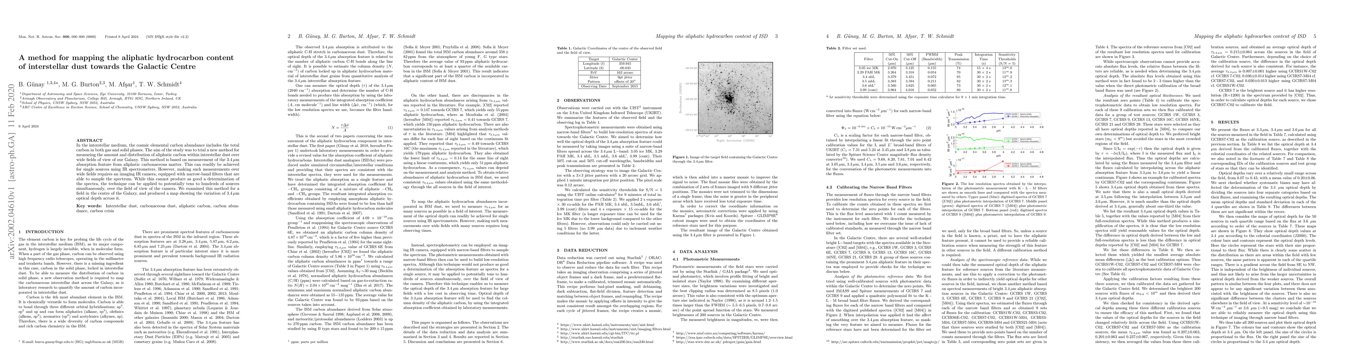 This paper introduces a new method for mapping the aliphatic hydrocarbon content in interstellar dust using the 3.4 µm absorption feature, employing an imaging IR camera for wide-field observations. The study produced a map of the 3.4 µm optical depth variation towards the Galactic Centre.