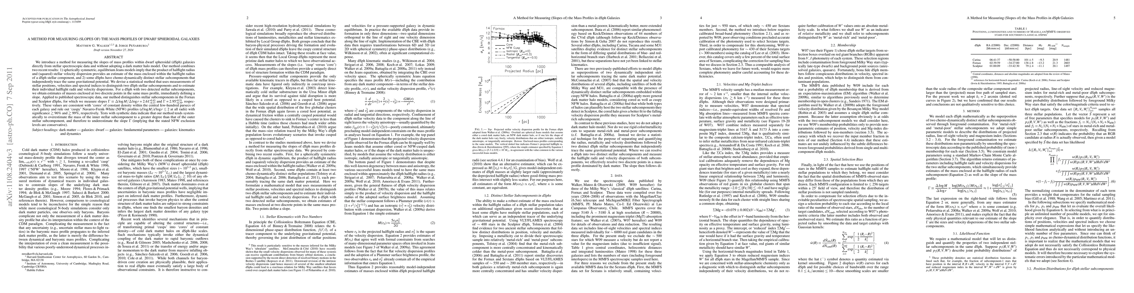 This paper introduces a novel method for measuring the slopes of mass profiles in dwarf spheroidal galaxies using stellar spectroscopic data without assuming dark matter halo models. The method identifies and estimates the mass of distinct stellar subcomponents within these galaxies, providing a slope for their mass profiles and ruling out cuspy dark matter profiles with high significance.
