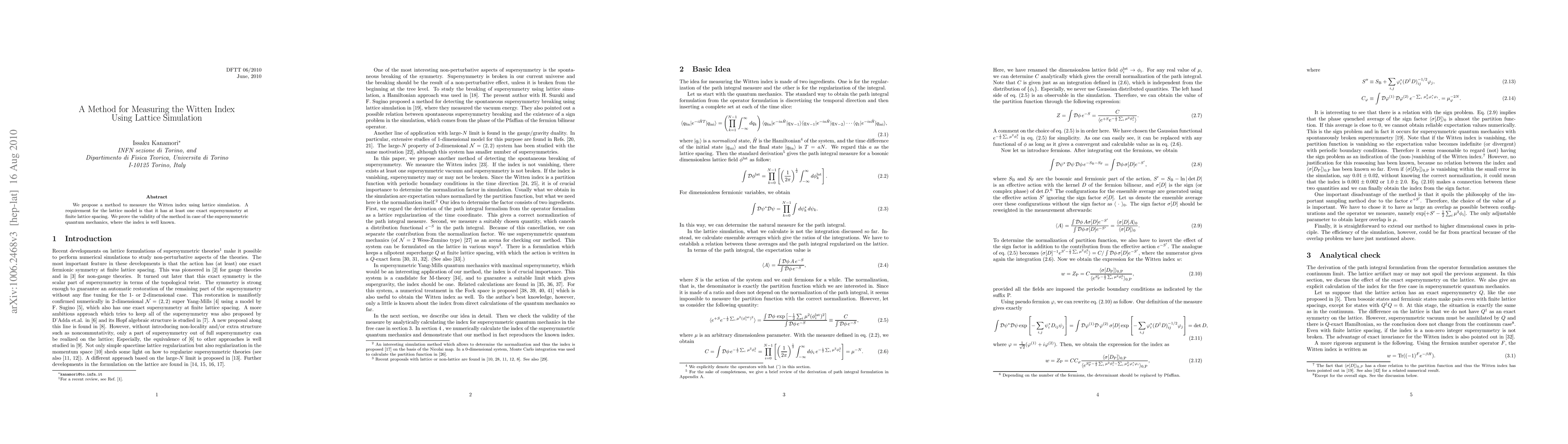 This paper introduces a novel lattice simulation method to measure the Witten index, validated in supersymmetric quantum mechanics. It requires a lattice model with exact supersymmetry at finite spacing.