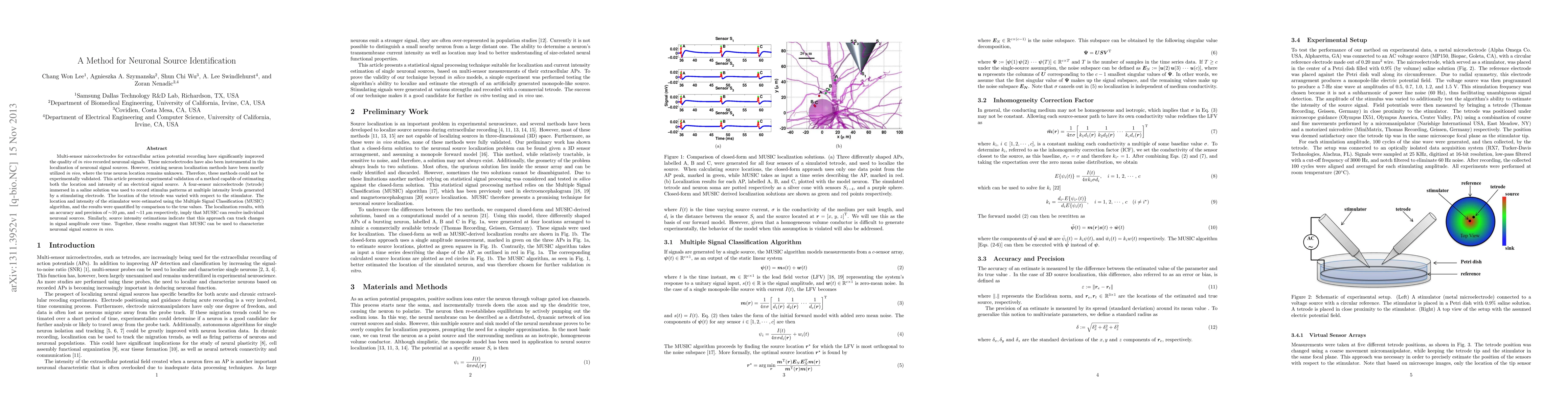 A new method using the Multiple Signal Classification algorithm accurately localizes and measures the intensity of neuronal signal sources in vivo with an accuracy of around 10 microns.