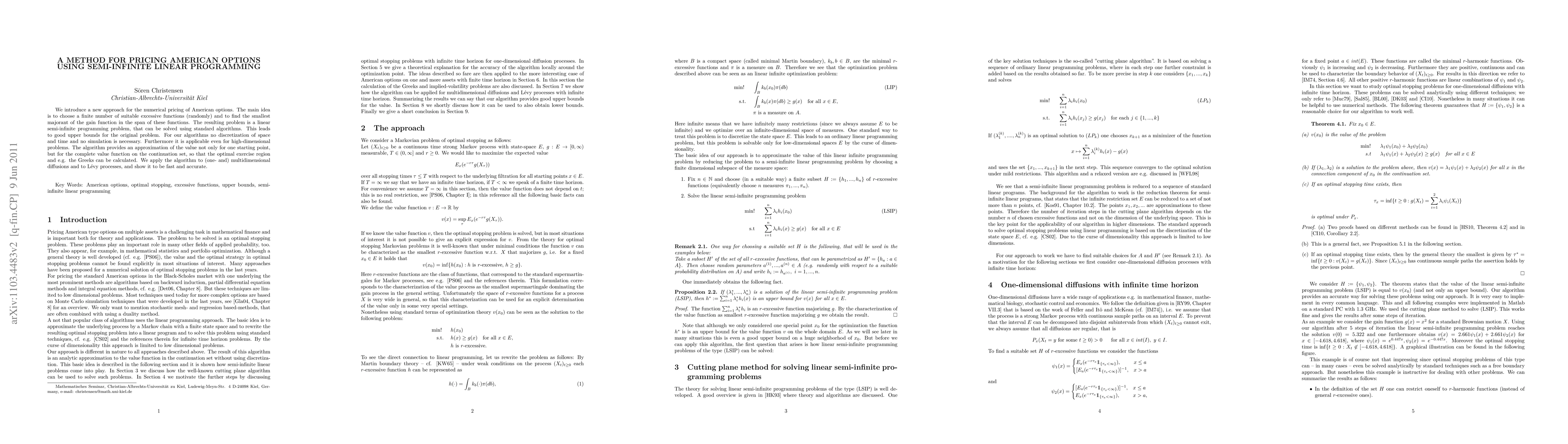 This paper proposes a novel method for pricing American options using semi-infinite linear programming, leveraging a finite set of excessive functions to approximate the value function without requiring space-time discretization or simulation. The approach is shown to be effective and accurate for both multidimensional diffusions and Lévy processes.