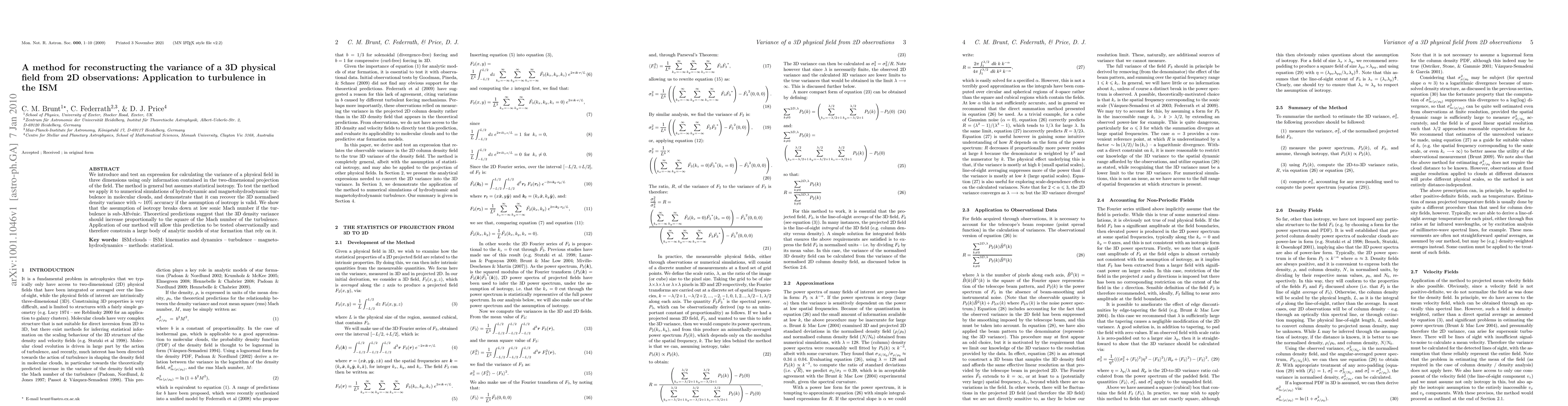 We introduce and test an expression for calculating the variance of a physical field in three dimensions using only information contained in the two-dimensional projection of the field. The method is general but assumes statistical isotropy. To test the method we apply it to numerical simulations of hydrodynamic and magnetohydrodynamic turbulence in molecular clouds, and demonstrate that it can recover the 3D normalised density variance with ~10% accuracy if the assumption of isotropy is valid. We show that the assumption of isotropy breaks down at low sonic Mach number if the turbulence is sub-Alfvenic. Theoretical predictions suggest that the 3D density variance should increase proportionally to the square of the Mach number of the turbulence. Application of our method will allow this prediction to be tested observationally and therefore constrain a large body of analytic models of star formation that rely on it.