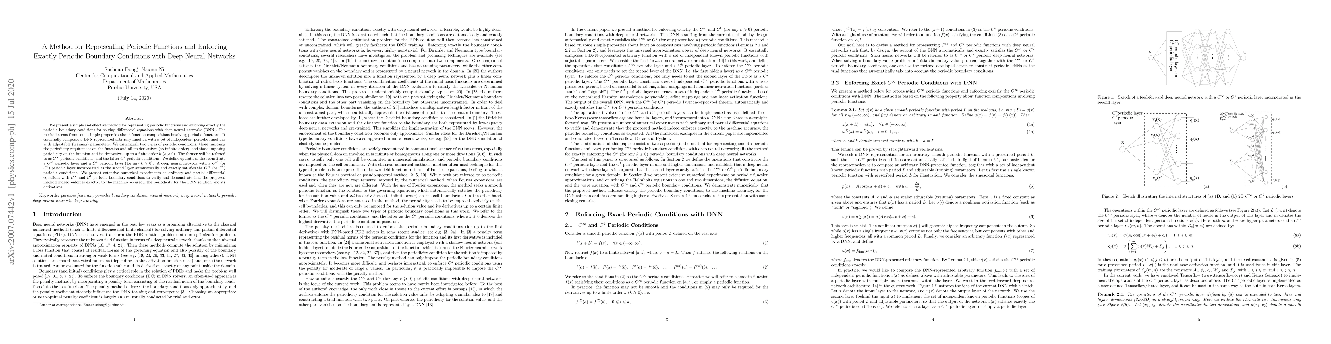This paper introduces a method for representing periodic functions and enforcing periodic boundary conditions in deep neural networks (DNNs) by composing DNNs with independent periodic functions. The method supports two types of periodic conditions: $C^{\infty}$ and $C^k$ periodic conditions, and it defines corresponding periodic layers that ensure exact periodicity in the DNN solutions.