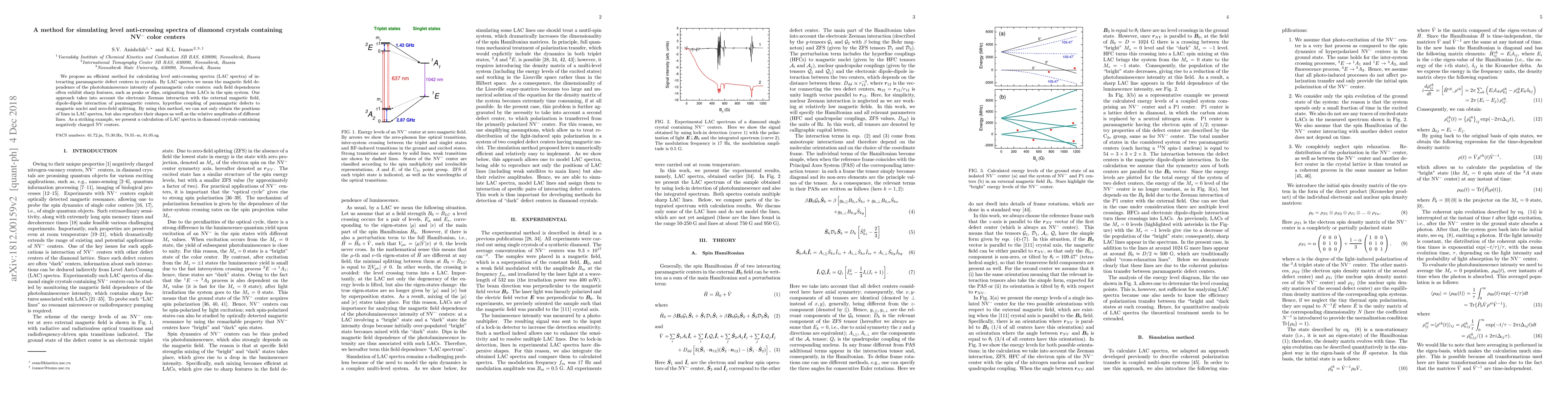 We propose an efficient method for calculating level anti-crossing spectra (LAC spectra) of interacting paramagnetic defect centers in crystals. By LAC spectra we mean the magnetic field dependence of the photoluminescence intensity of paramagnetic color centers: such field dependences often exhibit sharp features, such as peaks or dips, originating from LACs in the spin system. Our approach takes into account the electronic Zeeman interaction with the external magnetic field, dipole-dipole interaction of paramagnetic centers, hyperfine coupling of paramagnetic defects to magnetic nuclei and zero-field splitting. By using this method, we can not only obtain the positions of lines in LAC spectra, but also reproduce their shapes as well as the relative amplitudes of different lines. As a striking example, we present a calculation of LAC spectra in diamond crystals containing negatively charged NV centers.